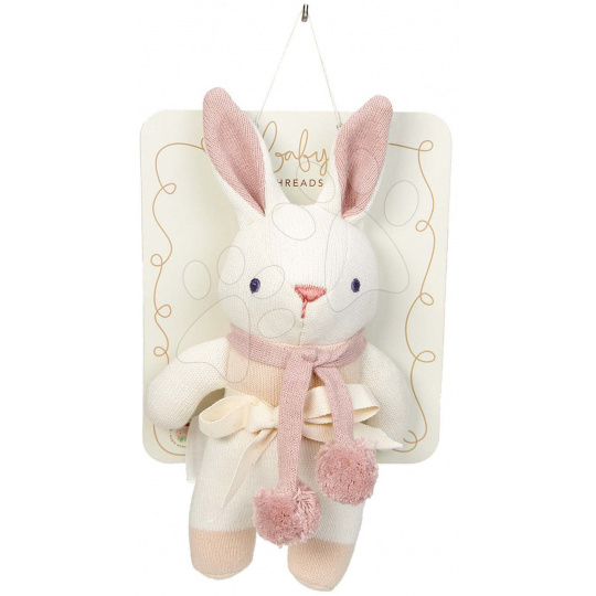 Panenky pletené zajíčci Baby Threads Gift Set spolu tvoří okouzlující soupravu, která je vhodná pro všechna miminka již od narození. Krásné pletené panenky jsou vyrobeny z příjemné měkoučké organické bavlny a za jejich designem stojí přední designéři značky ThreadBear Design. Stanou se nerozlučnými společníky vašeho miminka, které s nimi bude snáze usínat. V nadčasové sadě se nachází panenka krémového zajíčka s růžovou šálou o výšce 22 cm a zajíček na mazlení ve čtvercovém tvaru, ke kterému se děti snadno přitulí, dodává jim pocit bezpečí a jistoty. Sada pletených panenek je ideálním doplňkem do dětské postýlky, vaši nejmenší se s nimi mohou bez obav mazlit a objímat.