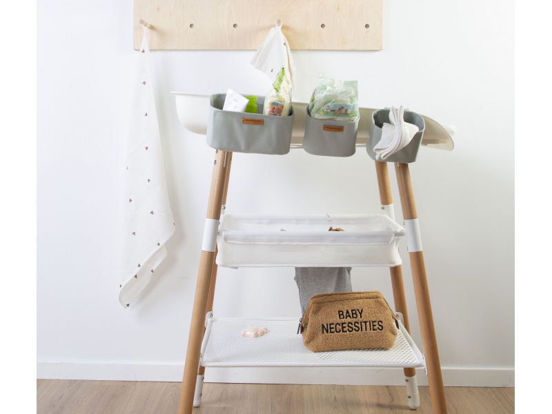 Prostorná toaletní taška na zip s vnitřními kapsami a pružnými úchyty vám umožní přehledné uložení toaletních potřeb pro vaše miminko. Drátěná konstrukce v horním okraji tašky umožňuje široké otevření tašky shora pro snadný přístup k uloženým toaletním potřebám. Taška je vyrobena z měkkého plyšového materiálu s podšívkou. Ideální doplněk k přebalovací tašce Childhome Mommy Bag. Rozměry: 27 x 13 x 15 cm