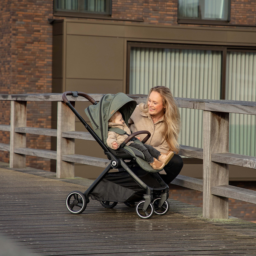 Prostorný úložný koš pojme vše potřebné, zatímco prostorná luxusní stříška ochrání vaše dítě před nepříznivým počasím a prudkým sluníčkem.