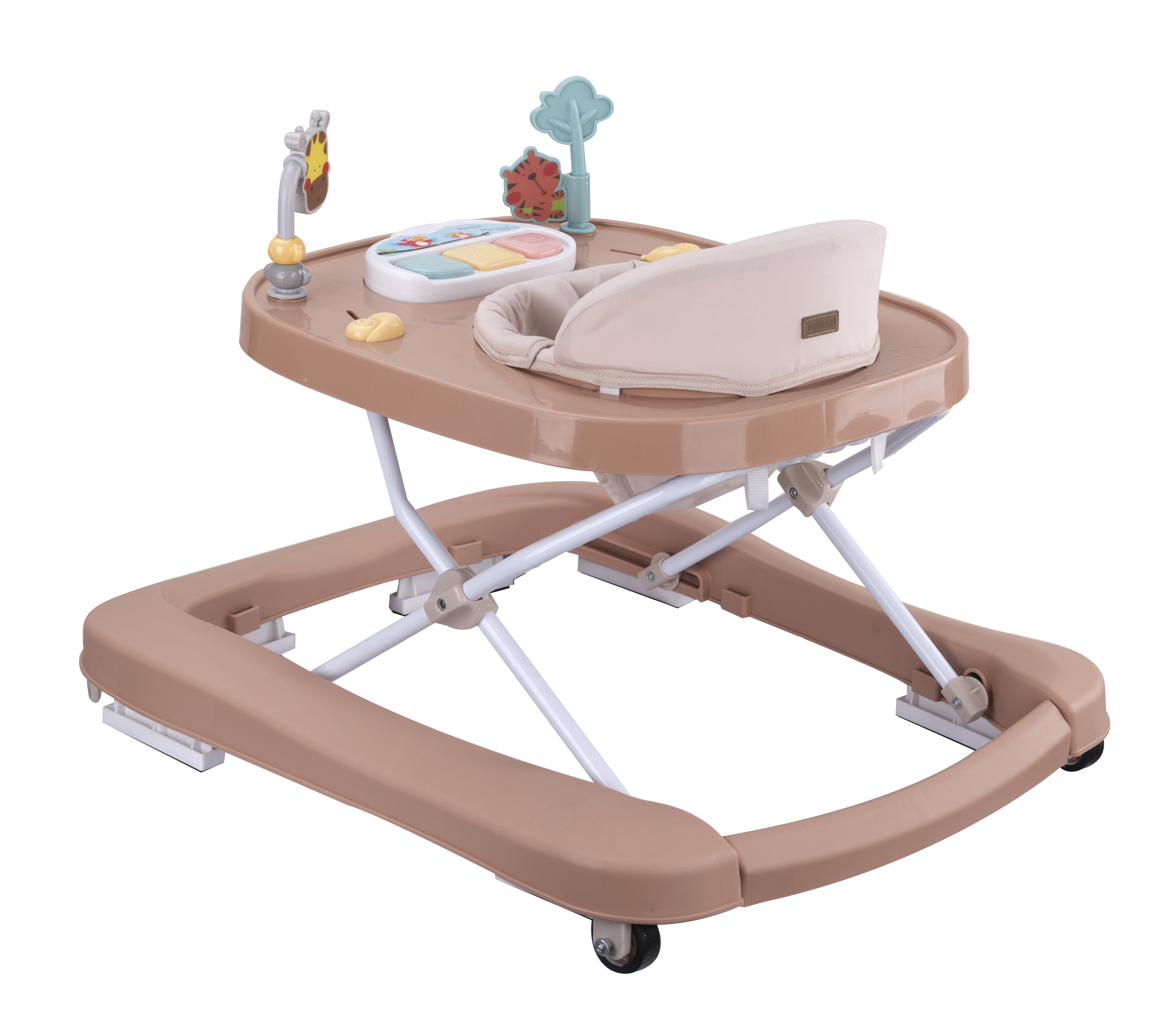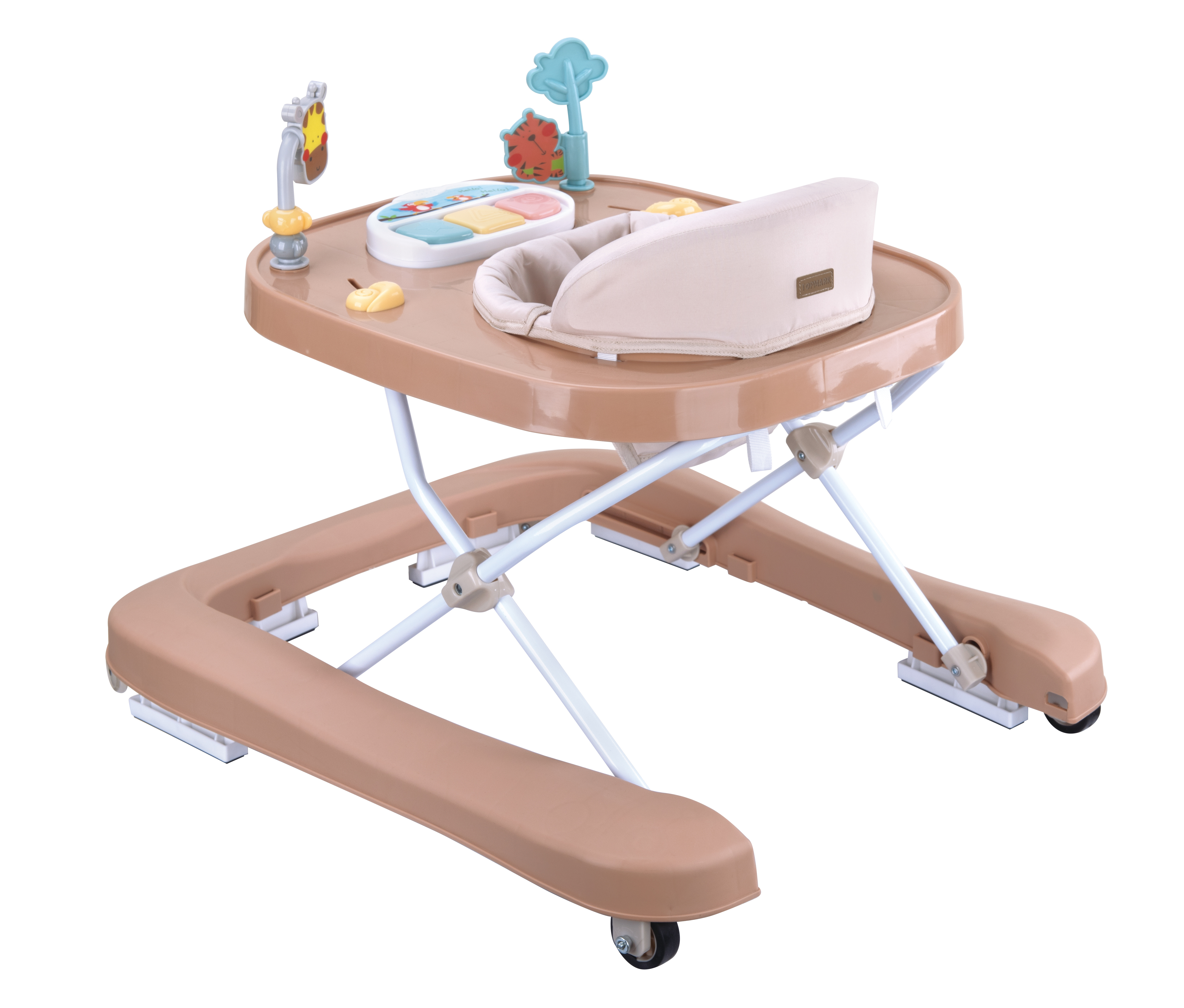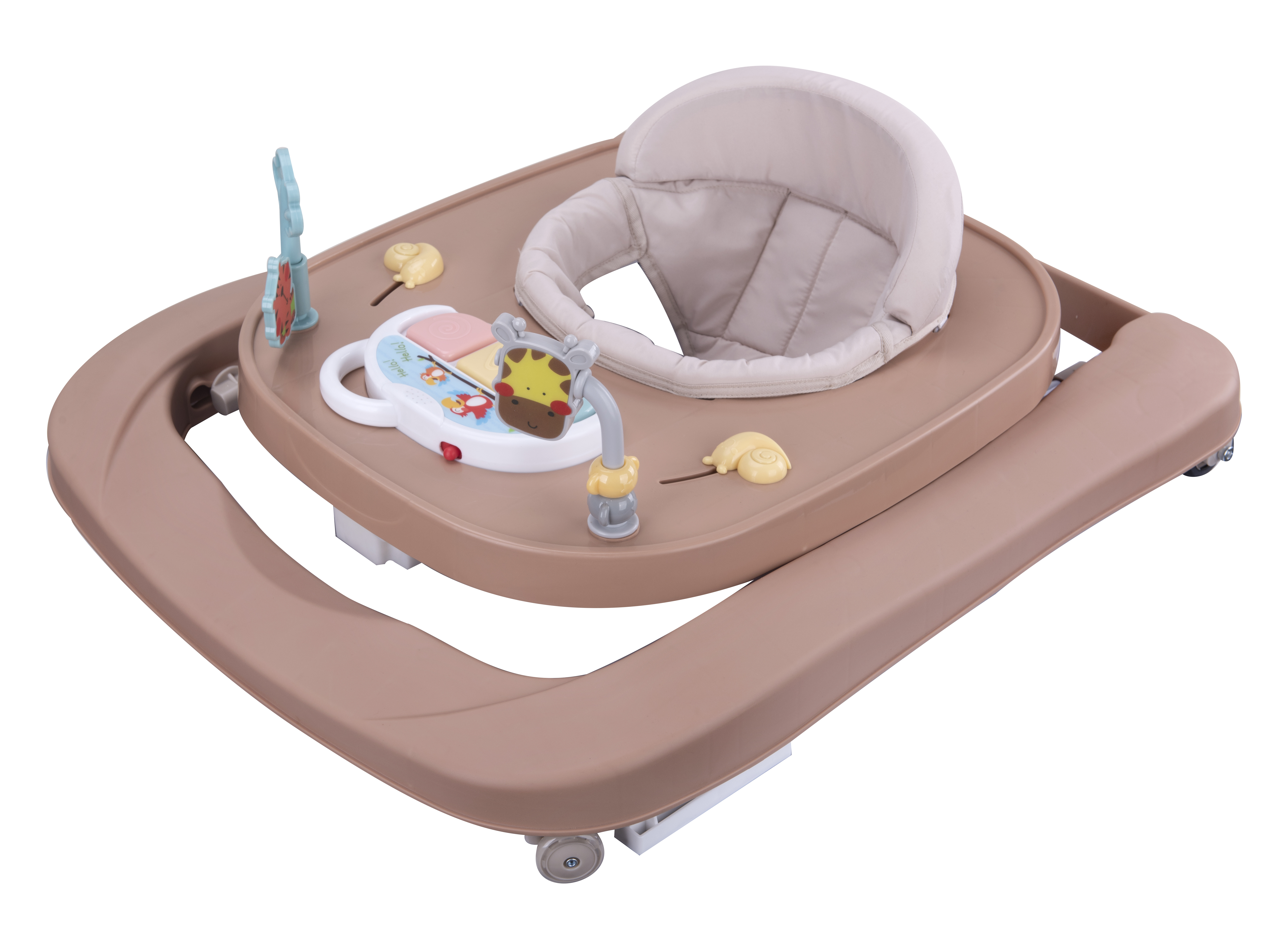 - Součástí chodítka je hudební aktivity panel, který rozvíjí sluchové, hmatové a koordinační dovednosti dítěte.