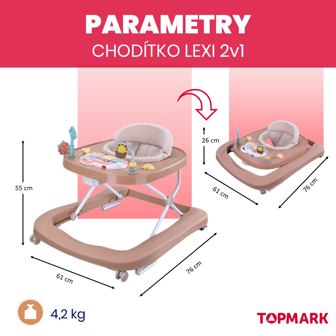 Topmark LEXI chodítko 2v1 macchiato