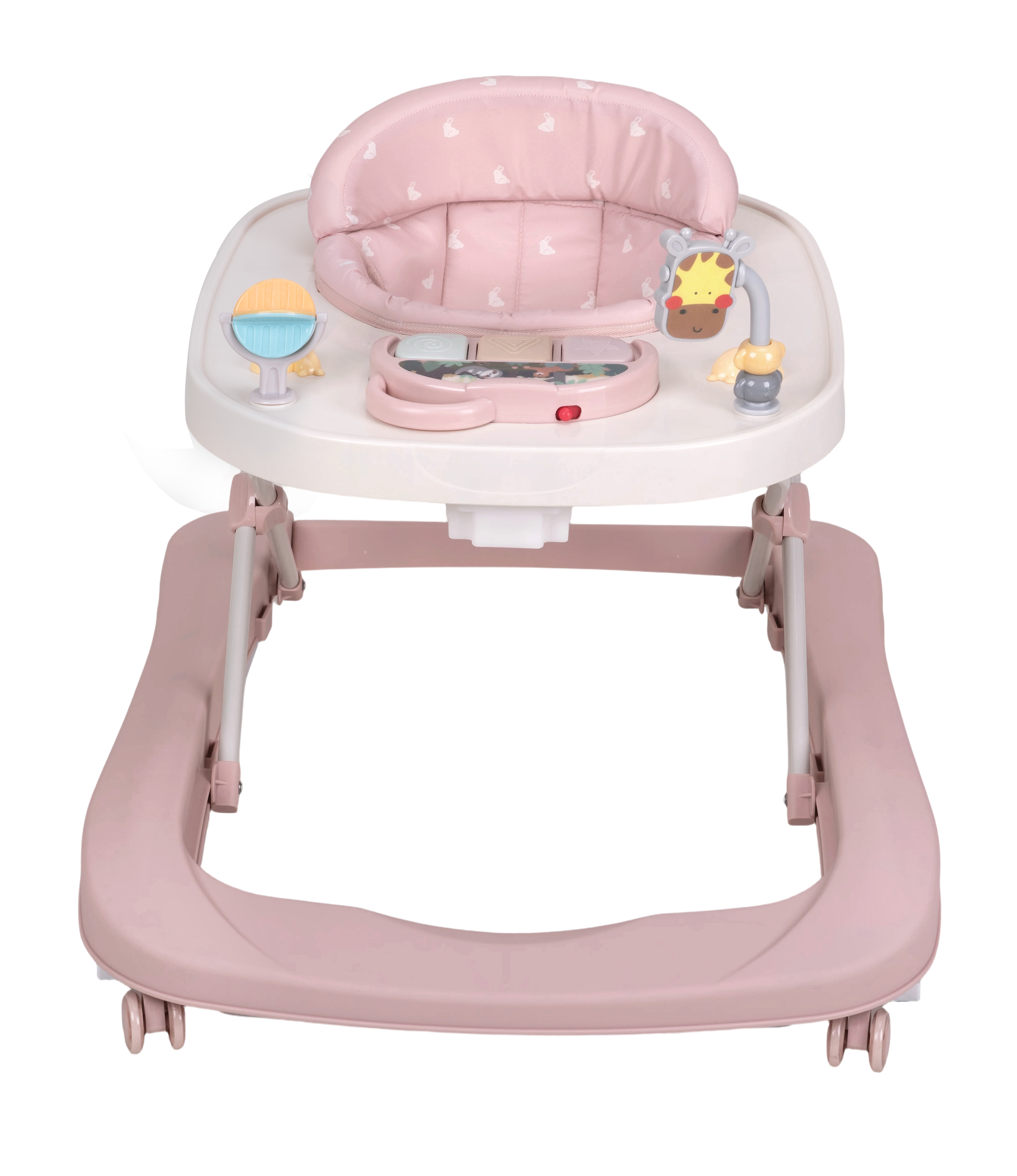 Hrací pultík obsahuje krásné veselé hračky, které rozvíjí koordinaci děťátka a rozveselí jej zvuky a světly. Chodítko je vybaveno kolečky a brzdičkami, které brání v převážení chodítka, jakmile se těžiště přesune na zadní kola. Jakmile vaše děťátko povyroste a začne dělat první krůčky je načase opustit chodítko a využít jeho druhou funkci, kdy po vyjmutí zadní tyče poskytuje chodítko podporu a mění se v AKTIVITY chodítko.