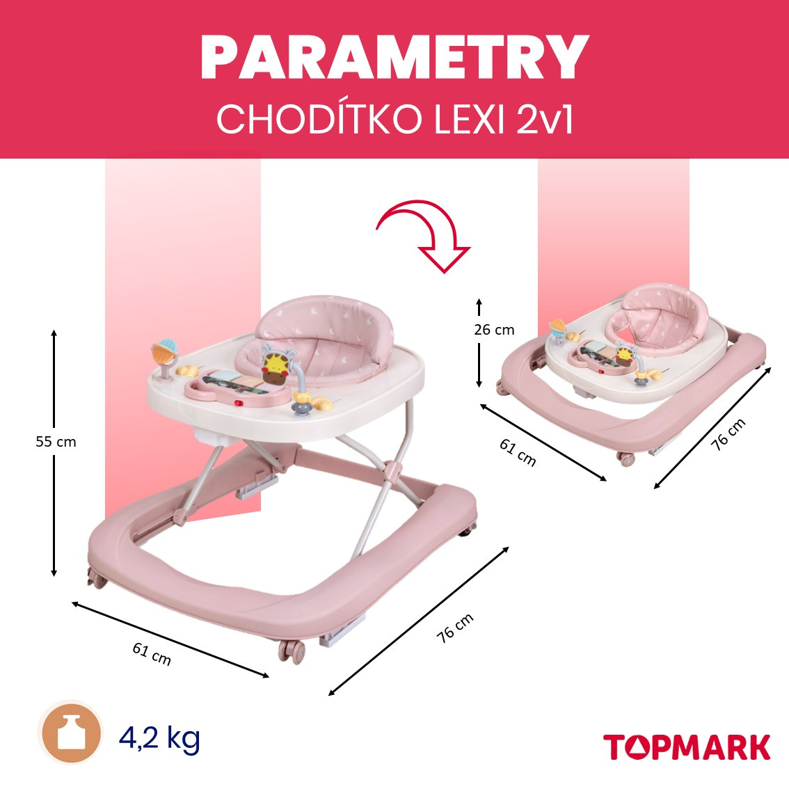 Topmark LEXI chodítko 2v1 pink