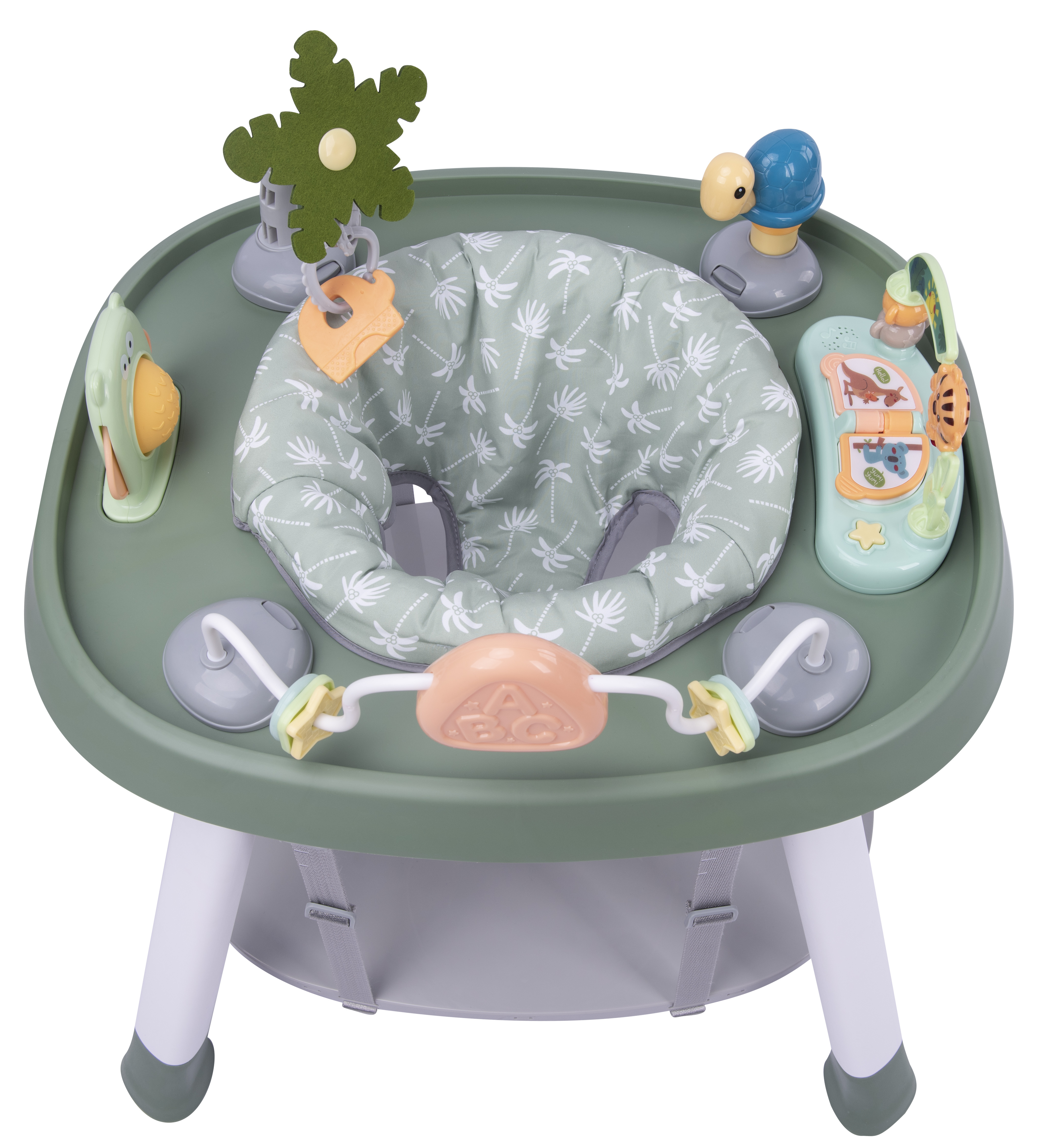 Součástí centra je pohodlné měkce polstrované otočné sedátko. Děťátko se tak snadno dostane na všechny hračky, které centrum nabízí. Díky tomu si užije váš maličký ještě více zábavy, může bezpečně „cestovat“ dokola, objevovat nové zvuky, světýlka, a přitom bude stále v bezpečí.