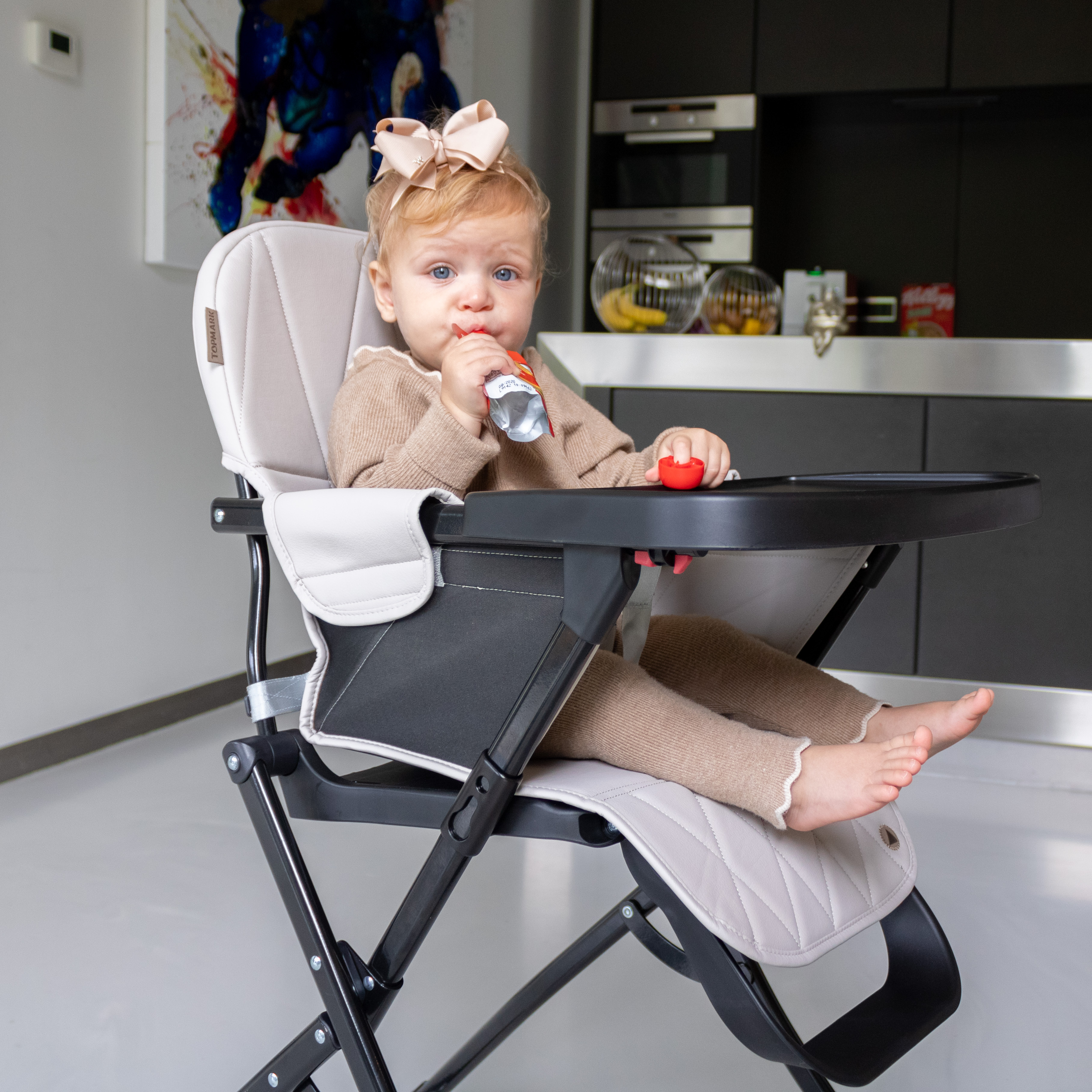 Jídelní židlička je vybavena prostorným, odnímatelným tácem.