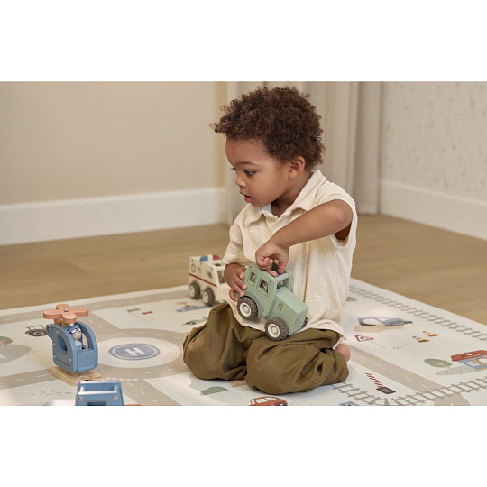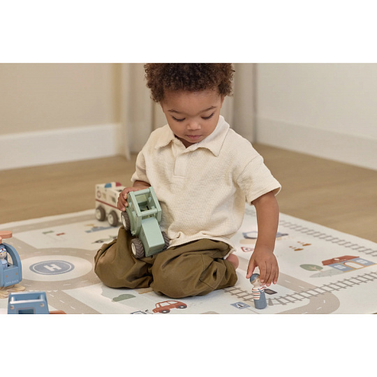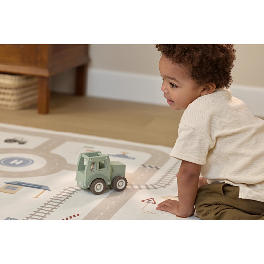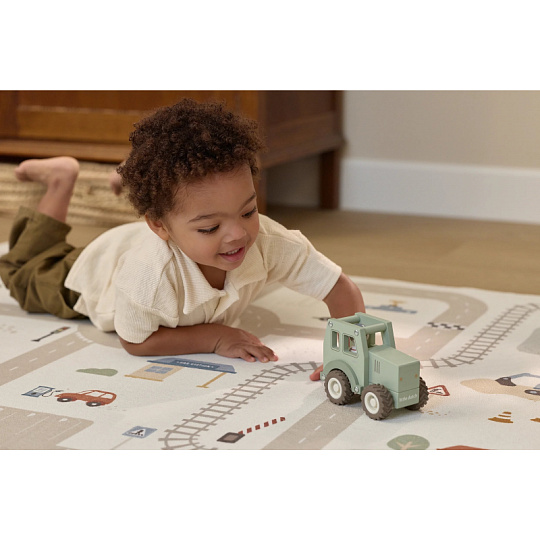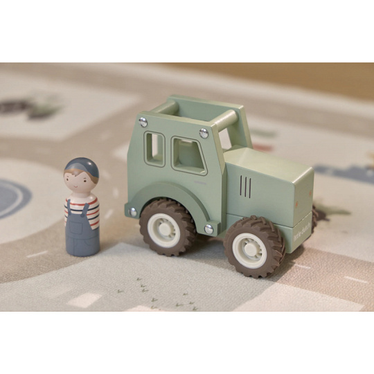 Nastartujte motor a vyražte s traktorem na pole! Sympatický traktorista už čeká, až vyrazíte na cestu. Díky gumovým pneumatikám se traktor v krásném dřevěném provedení hladce pohybuje po podlaze. Otevřený design zajišťuje snadné uchopení i pro nejmenší ruce. Nadčasová hračka, která rozvíjí fantazii i jemnou motoriku. Hračka je součástí kolekce vysoce kvalitních dřevěných hraček Little Dutch, navržených s důrazem na bezpečnost a originální design. Vyrobeno z odolného FSC certifikovaného dřeva. Rozměry: 13 x 7 x 10 cm Vhodné pro děti od 18 měsíců.