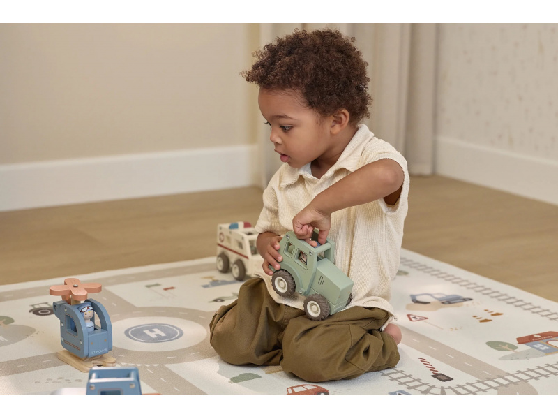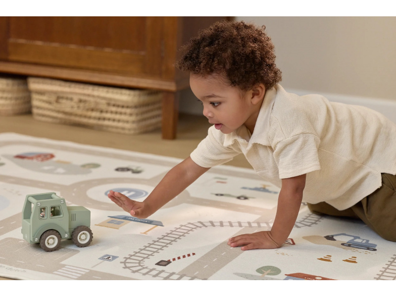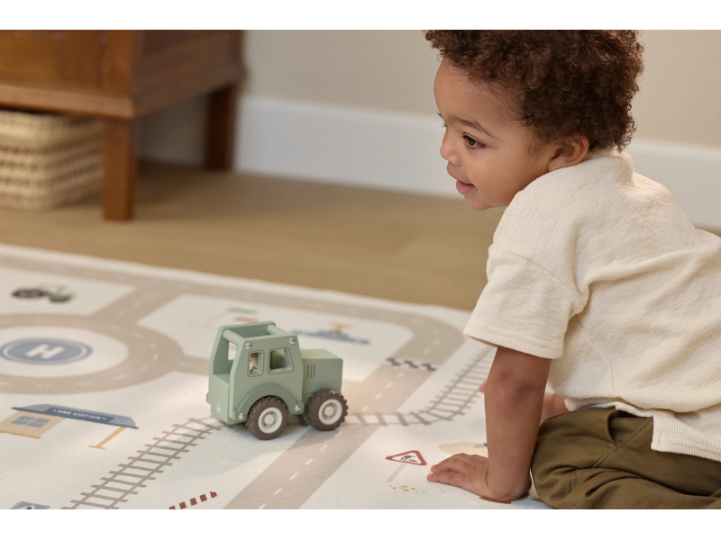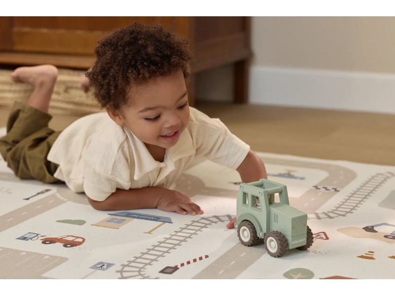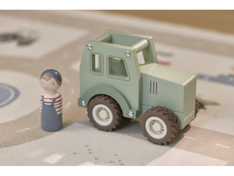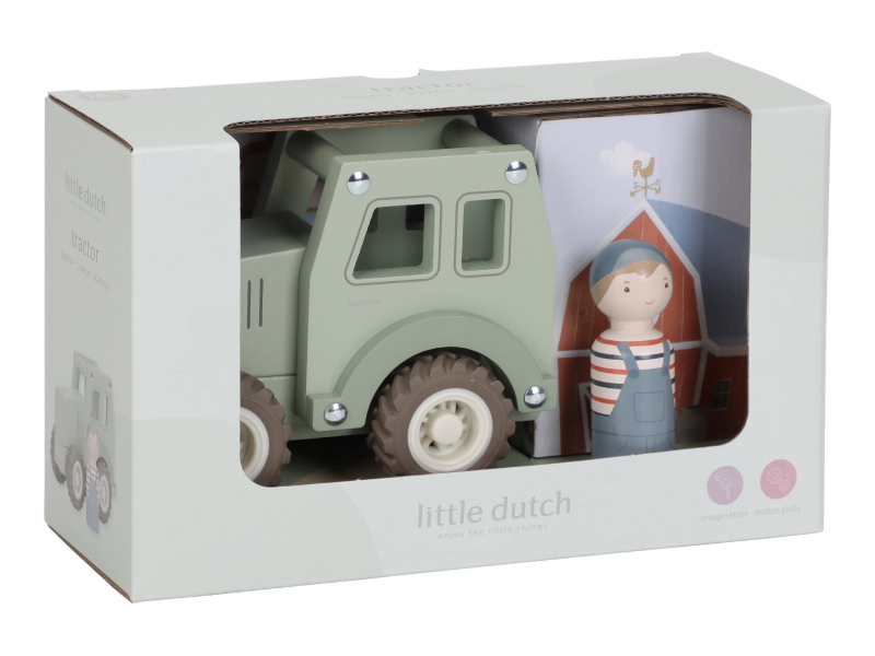Nastartujte motor a vyražte s traktorem na pole! Sympatický traktorista už čeká, až vyrazíte na cestu. Díky gumovým pneumatikám se traktor v krásném dřevěném provedení hladce pohybuje po podlaze. Otevřený design zajišťuje snadné uchopení i pro nejmenší ruce. Nadčasová hračka, která rozvíjí fantazii i jemnou motoriku. Hračka je součástí kolekce vysoce kvalitních dřevěných hraček Little Dutch, navržených s důrazem na bezpečnost a originální design. Vyrobeno z odolného FSC certifikovaného dřeva. Rozměry: 13 x 7 x 10 cm Vhodné pro děti od 18 měsíců.