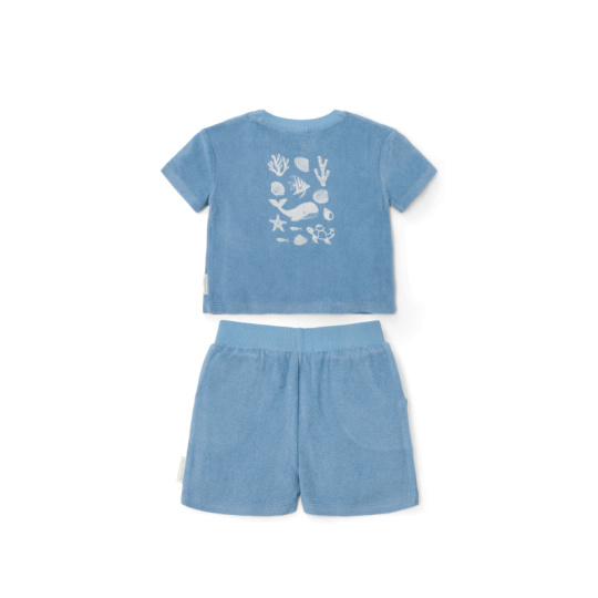 Tričko a kraťasy z příjemného bavlněného froté materiálu jsou ideální pro teplé letní dny na pláži, zahradě i na výletech a procházkách. Složení: 100% organická bavlna Možno prát v pračce na 30°C.