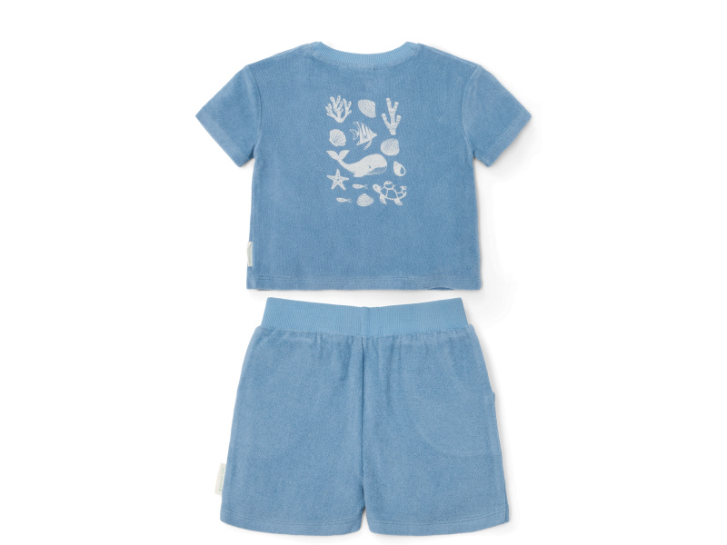 Tričko a kraťasy z příjemného bavlněného froté materiálu jsou ideální pro teplé letní dny na pláži, zahradě i na výletech a procházkách. Složení: 100% organická bavlna Možno prát v pračce na 30°C.