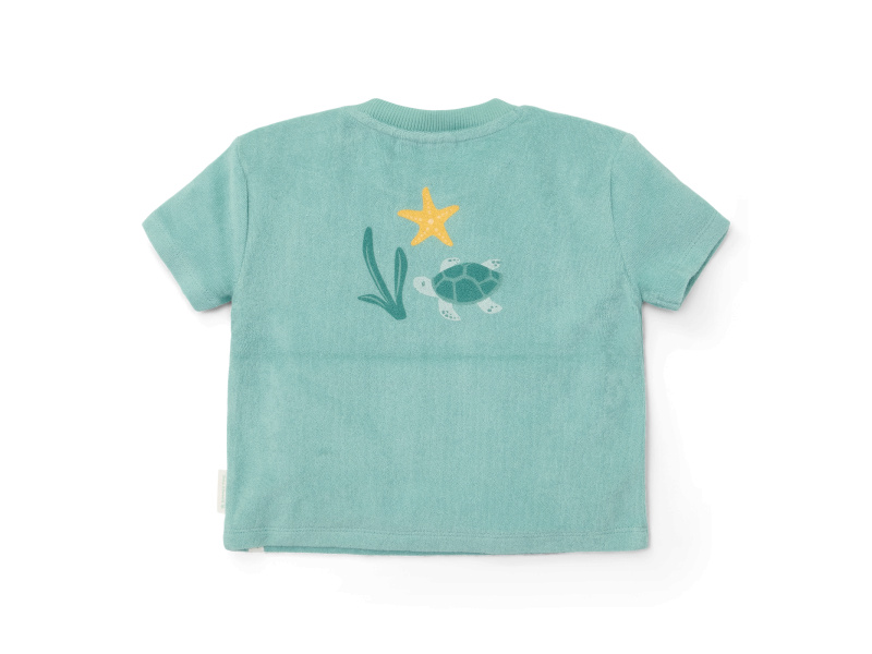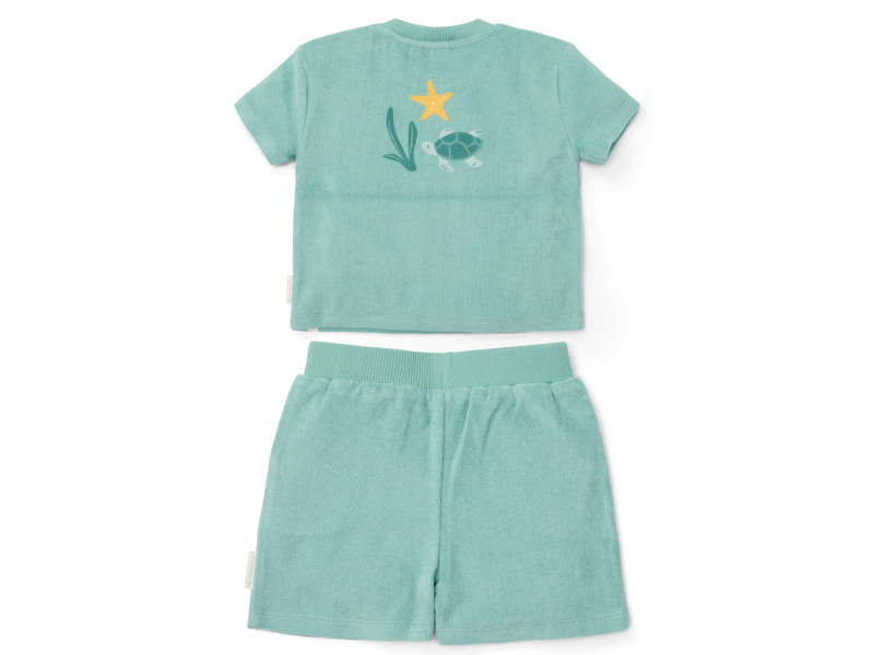 Tričko a kraťasy z příjemného bavlněného froté materiálu jsou ideální pro teplé letní dny na pláži, zahradě i na výletech a procházkách. Složení: 100% organická bavlna Možno prát v pračce na 30°C.