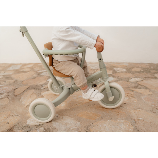 Dětská tříkolka 4v1 Little Dutch roste s vaším dítětem! Multifunkční tříkolka se snadno přizpůsobí měnícím se potřebám dítěte od jednoho do tří let a pomůže mu rozvíjet rovnováhu i koordinaci. Tříkolka je ideální pro objevování světa na kolech a plynulý přechod na šlapací kolo. 4v1 design – snadno přeměníte tříkolku na balanční odrážedlo Dětská bezpečnost na prvním místě – odnímatelný bezpečnostní pás a ochranný kruh zajišťují stabilní jízdu nejmenších dětí Rodičovská kontrola – odnímatelná vodicí tyč umožňuje pohodlné tlačení Přizpůsobitelná velikost – výškově nastavitelné sedlo a řídítka Snadné složení a přenášení – lehká a kompaktní konstrukce (pouze 4,5 kg) Prostor pro uložení odnímatelných pedálů pod sedadlo Rozměry: 69 x 45 x 51 cm Hmotnost: 4,5 kg Nosnost: 25 kg Vhodné pro děti od 1 do 3 let.