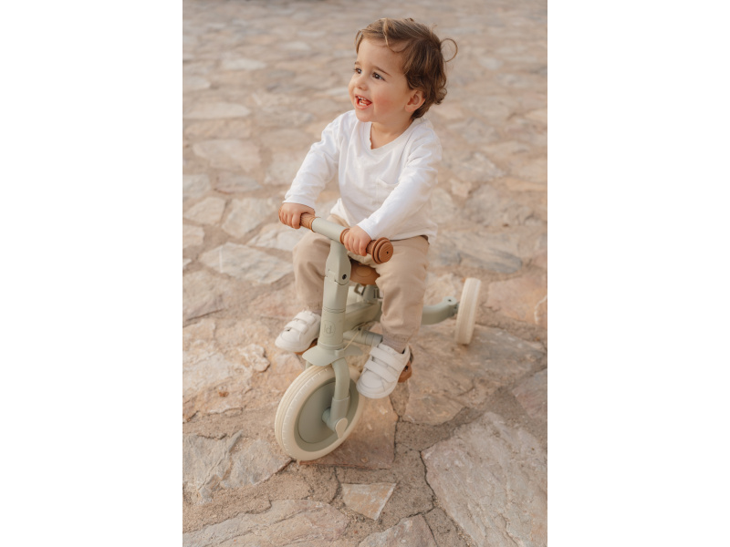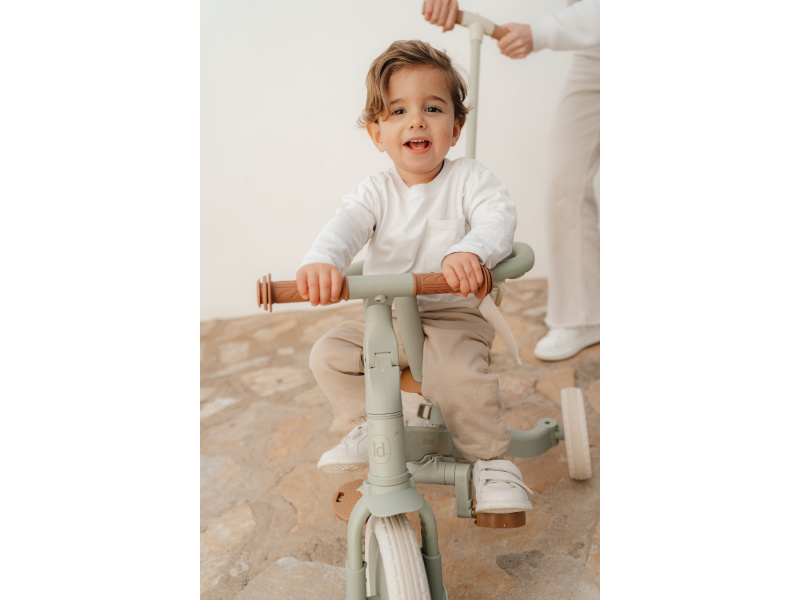 Dětská tříkolka 4v1 Little Dutch roste s vaším dítětem! Multifunkční tříkolka se snadno přizpůsobí měnícím se potřebám dítěte od jednoho do tří let a pomůže mu rozvíjet rovnováhu i koordinaci. Tříkolka je ideální pro objevování světa na kolech a plynulý přechod na šlapací kolo. 4v1 design – snadno přeměníte tříkolku na balanční odrážedlo Dětská bezpečnost na prvním místě – odnímatelný bezpečnostní pás a ochranný kruh zajišťují stabilní jízdu nejmenších dětí Rodičovská kontrola – odnímatelná vodicí tyč umožňuje pohodlné tlačení Přizpůsobitelná velikost – výškově nastavitelné sedlo a řídítka Snadné složení a přenášení – lehká a kompaktní konstrukce (pouze 4,5 kg) Prostor pro uložení odnímatelných pedálů pod sedadlo Rozměry: 69 x 45 x 51 cm Hmotnost: 4,5 kg Nosnost: 25 kg Vhodné pro děti od 1 do 3 let.
