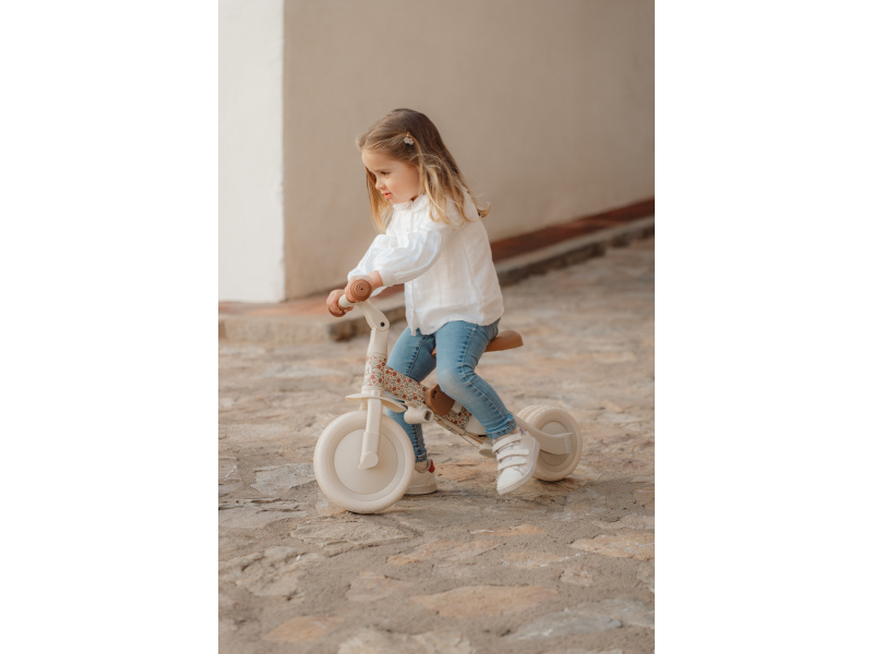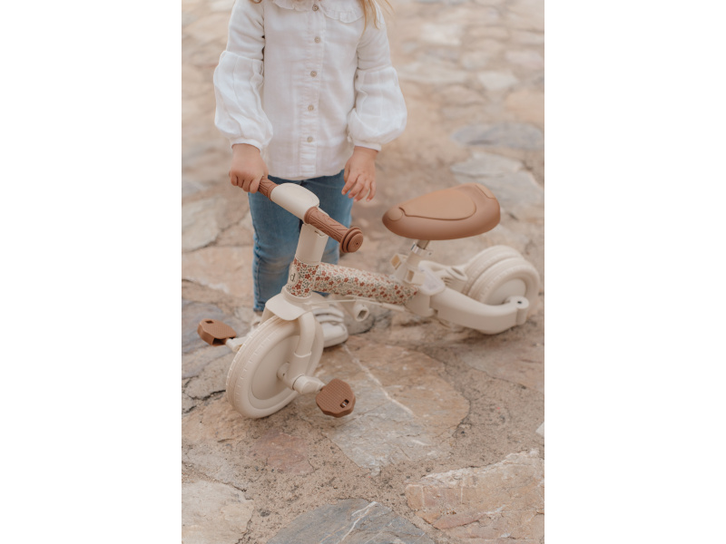 Dětská tříkolka 4v1 Little Dutch roste s vaším dítětem! Multifunkční tříkolka se snadno přizpůsobí měnícím se potřebám dítěte od jednoho do tří let a pomůže mu rozvíjet rovnováhu i koordinaci. Tříkolka je ideální pro objevování světa na kolech a plynulý přechod na šlapací kolo. 4v1 design – snadno přeměníte tříkolku na balanční odrážedlo Dětská bezpečnost na prvním místě – odnímatelný bezpečnostní pás a ochranný kruh zajišťují stabilní jízdu nejmenších dětí Rodičovská kontrola – odnímatelná vodicí tyč umožňuje pohodlné tlačení Přizpůsobitelná velikost – výškově nastavitelné sedlo a řídítka Snadné složení a přenášení – lehká a kompaktní konstrukce (pouze 4,5 kg) Prostor pro uložení odnímatelných pedálů pod sedadlo Rozměry: 69 x 45 x 51 cm Hmotnost: 4,5 kg Nosnost: 25 kg Vhodné pro děti od 1 do 3 let.