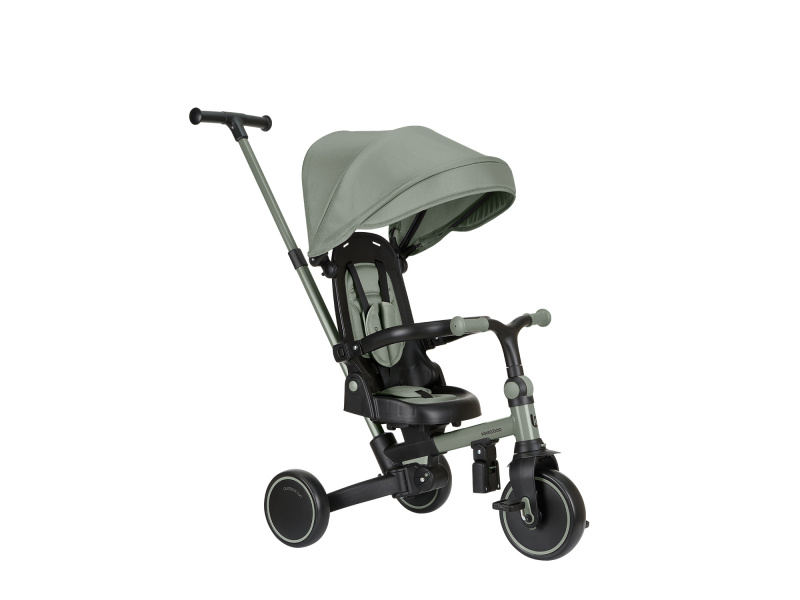 Multifunkční tříkolka KikkaBoo Aluma 8v1 je navržená tak, aby dítěti sloužila opravdu dlouho – od 12 do 60 měsíců. V začátcích funguje v bezpečném „kočárkovém“ režimu s vedením rodičem, postupně přechází do samostatné jízdy jako tříkolka s pedály a odrážedlo. Díky skládacímu provedení a chytrým detailům je ideální i na cestování. Pro maximální bezpečí je tříkolka vybavená 5-bodovým pásem, odnímatelným bezpečnostním madlem a nastavitelnou stříškou, kterou lze podle potřeby odejmout. Nechybí sklápěcí opěrka zad nastavitelná do 4 poloh, nastavitelná řídítka a otočné sedátko. Rodiče ocení nastavitelnou vodicí tyč ve 3 polohách, díky kterým se tříkolka dobře ovládá. Pedály na předním kole lze zablokovat, zadní kola mají brzdu a celé složení funguje jedním tlačítkem. Pro přenášení je k dispozici madlo a na drobnosti taška na příslušenství. Konstrukce je z lehké a pevné hliníkové slitiny, takže je tříkolka dobře přenosná a zároveň stabilní pro každodenní používání. skládací design + složení jedním tlačítkem multifunkční 8v1 (od rodičovského vedení až po odrážedlo) lehký a odolný hliníkový rám otočné sedátko nastavitelná řídítka a opěrka zad odnímatelná a nastavitelná stříška 5-bodové pásy + odnímatelné bezpečnostní madlo nastavitelná vodicí tyč sklápěcí opěrka nohou zámek pedálů předního kola zadní brzda odnímatelné pedály madlo na přenášení + taška na doplňky Rozměry (rozložená): 71 × 49 × 93–99 cm Rozměry (složená): 55 × 49 × 38 cm Hmotnost: 6,4 kg Vhodné pro děti od 12 do 60 měsíců.