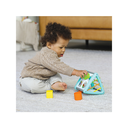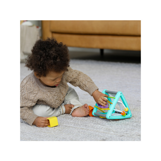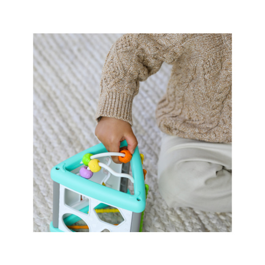 Interaktivní hračka nabízí pět stran zábavných aktivit včetně otvorů pro čtyři barevné vkládací tvary. Lákat ke zkoumání budou i pohyblivé korálky a pružné barevné hadičky s různorodými texturami. Hračka pomůže vašemu dítěti naučit se poznávat barvy i tvary a rozvíjet jednotlivé smysly a motorické dovednosti. Rozměry: 14,2 x 14,2 x 14,2 cm Vhodné pro děti od 3 měsíců.