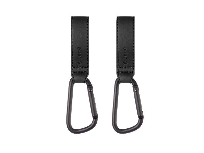 Pevné a odolné karabiny vám umožní snadno připevnit tašku, kabelku apod. na rukojeť kočárku. Karabiny o velikosti 8 cm jsou vyrobené z hliníku s nosností až 5 kg, Snadno se instalují s pomocí suchého zipu, nastavitelné úchyty z koženky zajistí připevnění bez rizika poškození rukojetikočárku. Vhodné pro použití nejen na kočárku, ale i v autě, na kole, invalidním vozíku, chodíku, nákupním vozíku, vodítku pro psa apod.