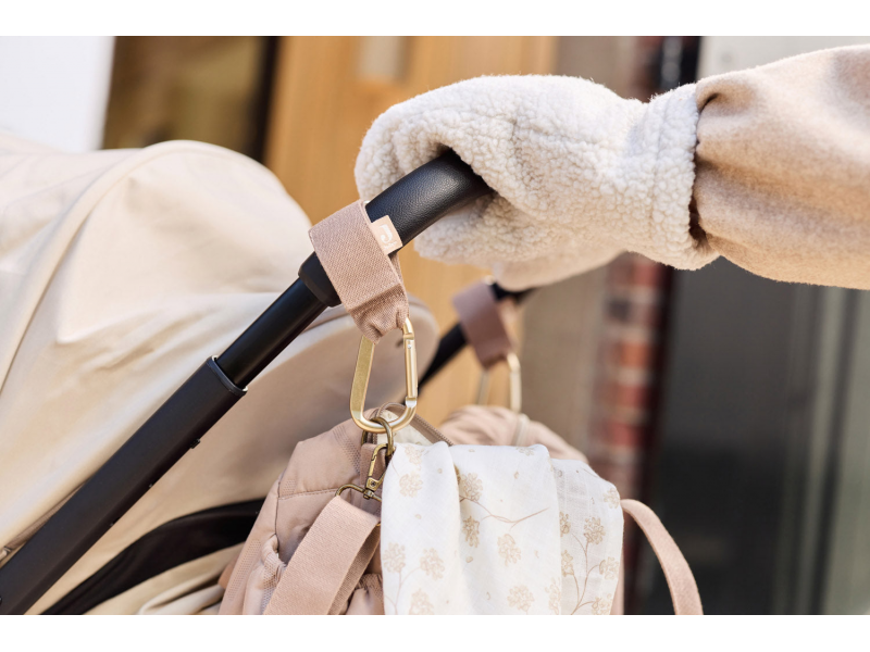 Praktický doplněk na procházky s kočárkem. Univerzální úchyt vám umožní snadno zavěsit přebalovací tašku, kabelku nebo nákupní tašku na rukojeť kočárku, aniž by se kočárek převážil. Úchyty vybavené zapínáním na suchý zip jsou vhodné pro většinu typů kočárků. Rozměry: 19 × 3,8 × 1 cm
