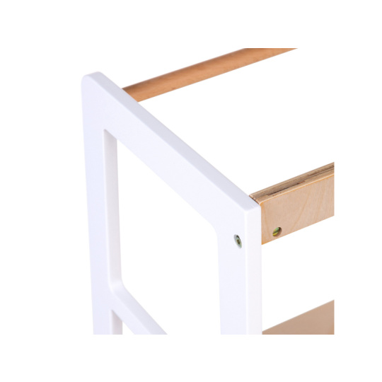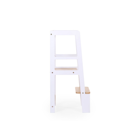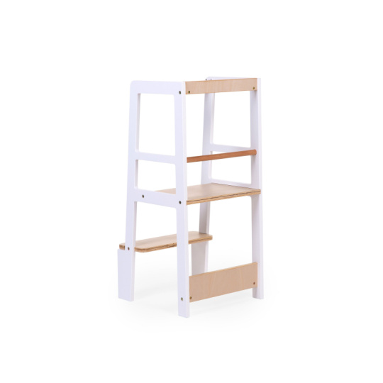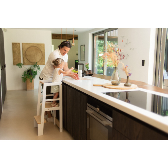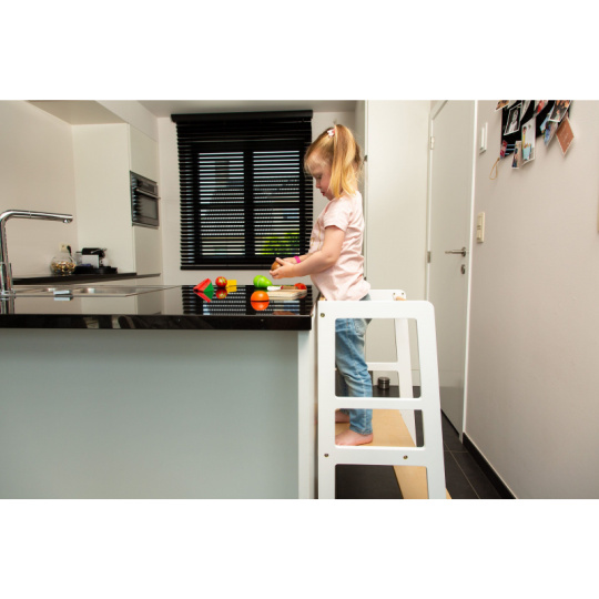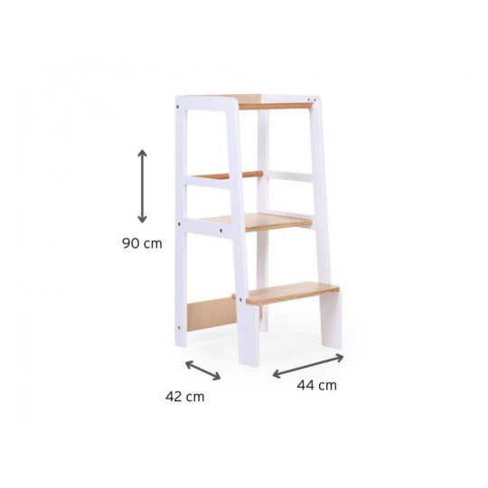 Učící věž v krásném dřevěném provedení je bezpečný druh schůdků, na které mohou děti samy snadno vylézt. Využijete ji v kuchyni, aby se vaše dítě mohlo dívat nebo i pomáhat při přípravě jídla. Je užitečná i v koupelně, kde se dá používat u umyvadla na čištění zubů nebo mytí rukou. Složení: bukové dřevo, buková překližka, PP Rozměry: 90 x 40 x 41 cm Výška prvního schůdku: 22,5 cm Výška platformy: 45 cm Nosnost: 100 kg Vhodné pro děti od 18 měsíců do 4 let.