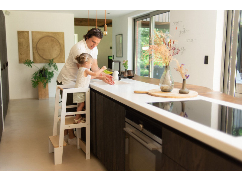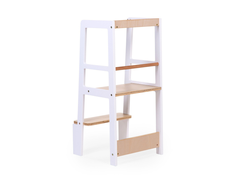 Učící věž v krásném dřevěném provedení je bezpečný druh schůdků, na které mohou děti samy snadno vylézt. Využijete ji v kuchyni, aby se vaše dítě mohlo dívat nebo i pomáhat při přípravě jídla. Je užitečná i v koupelně, kde se dá používat u umyvadla na čištění zubů nebo mytí rukou. Složení: bukové dřevo, buková překližka, PP Rozměry: 90 x 40 x 41 cm Výška prvního schůdku: 22,5 cm Výška platformy: 45 cm Nosnost: 100 kg Vhodné pro děti od 18 měsíců do 4 let.