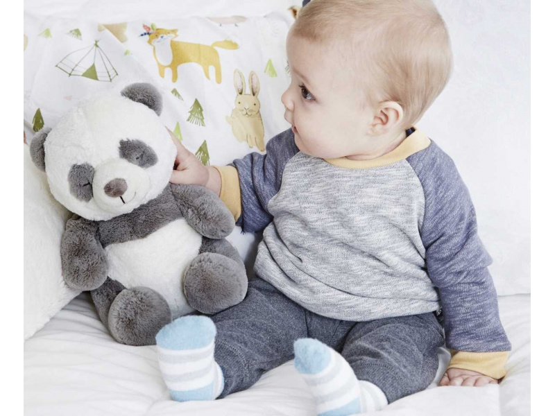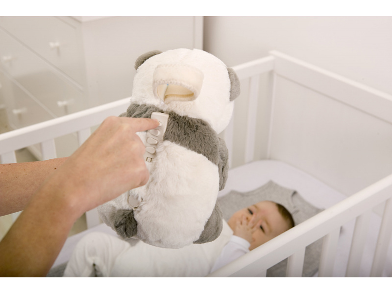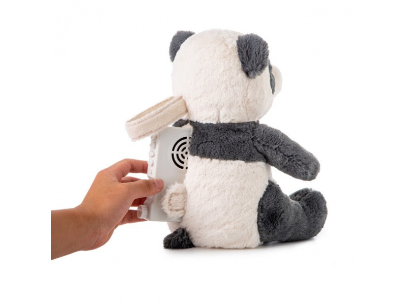 Usínáček v podobě neodolatelného plyšového medvídka pandy s hudbou a relaxačními zvuky pomůže vašemu dítěti uklidnit se a snáze usnout. Hračka nabízí 4 melodie a 4 uklidňující přírodní zvuky (déšť, tlukot srdce, vlny, velrybí píseň). Inteligentní senzor zvuku s nastavitelnou citlivostí aktivuje přehrávání melodie, když dítě začne plakat. Hudební box nabízí možnost nastavení hlasitosti a automatického vypnutí po 23 nebo 45 minutách. Usínáčka můžete snadno zavěsit na postýlku dítěte, postavit na noční stolek či položit do postýlky. Vyjímatelný hudební box se světlem je možné používat i samostatně mimo hračku pandy. Hračku je možné po vyjmutí hudební boxu prát v pračce. Baterie 2xAA jsou součástí balení. Rozměry: 26 x 16 x 10 cm Vhodné pro děti od narození.