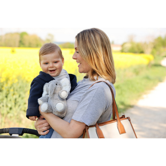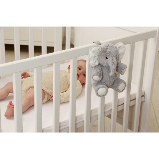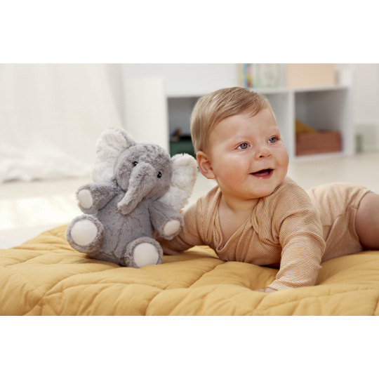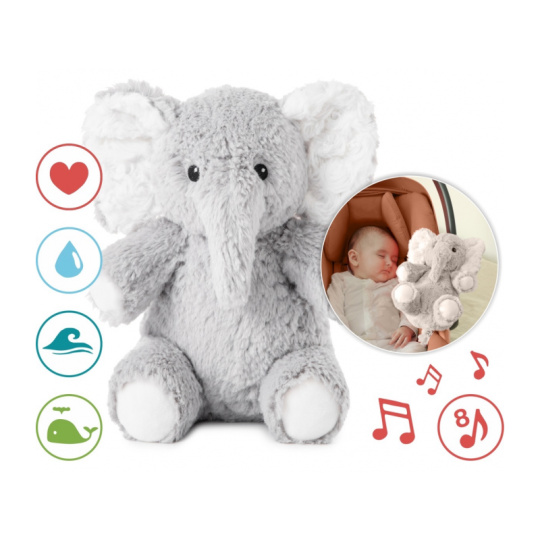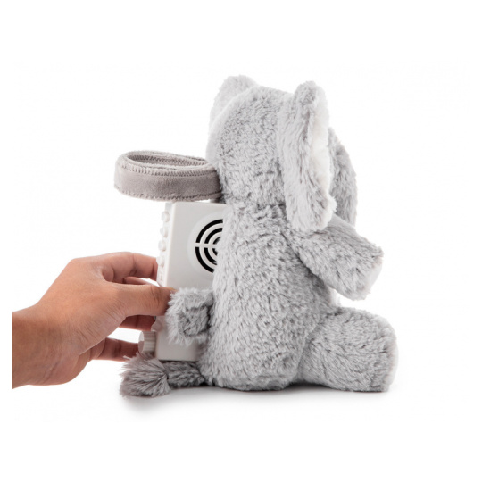 Usínáček v podobě neodolatelného plyšového slona Elliota s hudbou a relaxačními zvuky pomůže vašemu dítěti uklidnit se a snáze usnout. Hračka nabízí 4 melodie a 4 uklidňující přírodní zvuky (déšť, tlukot srdce, vlny, velrybí píseň). Menší verze hračky v podobě slona Elliota je ideální i na cesty, na dovolenou či na víkend u prarodičů. Hudební box nabízí možnost nastavení hlasitosti a automatického vypnutí po 23 nebo 45 minutách. Usínáčka můžete snadno zavěsit na postýlku dítěte, postavit na noční stolek či položit do postýlky. Vyjímatelný hudební box se světlem je možné používat i samostatně mimo hračku slona. Hračku je možné po vyjmutí hudební boxu prát v pračce. Baterie 2xAA jsou součástí balení. Rozměry: 19 x 17 x 11 cm Vhodné pro děti od narození.