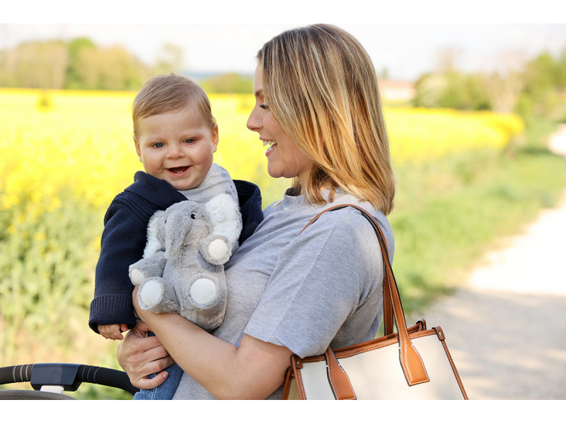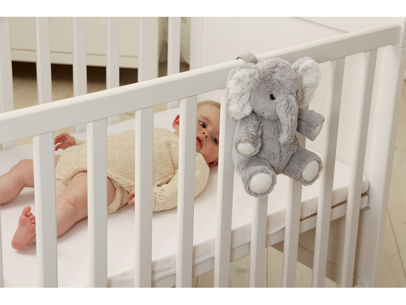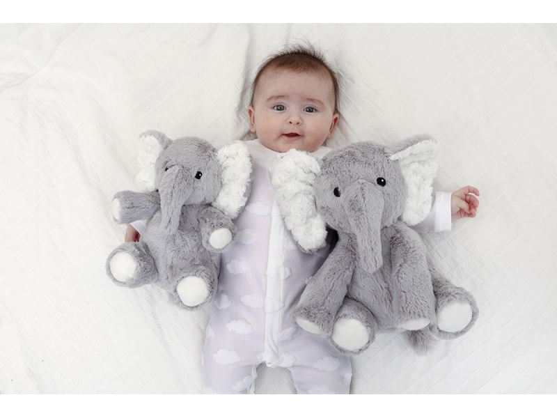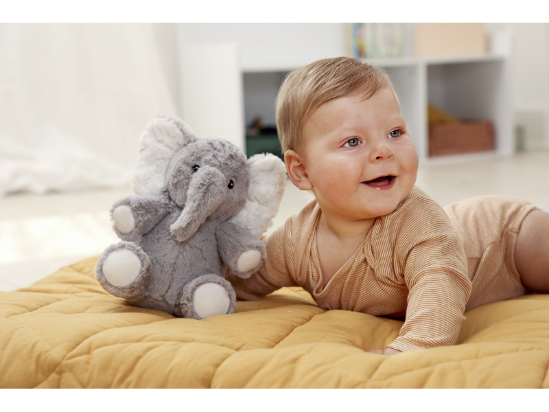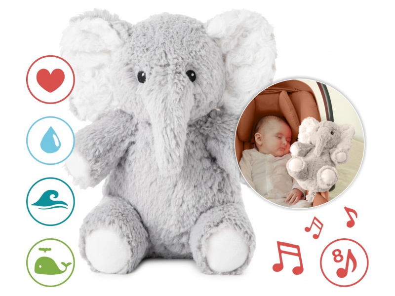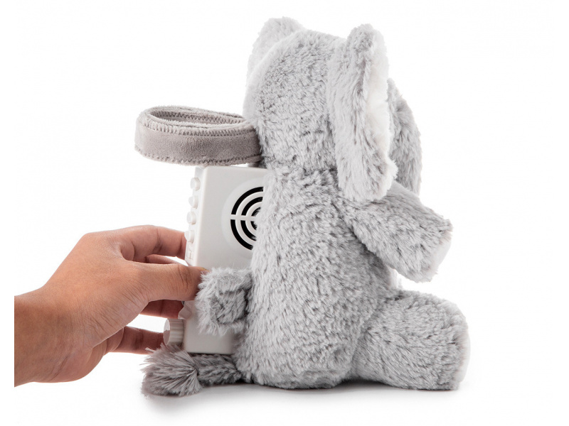 Usínáček v podobě neodolatelného plyšového slona Elliota s hudbou a relaxačními zvuky pomůže vašemu dítěti uklidnit se a snáze usnout. Hračka nabízí 4 melodie a 4 uklidňující přírodní zvuky (déšť, tlukot srdce, vlny, velrybí píseň). Menší verze hračky v podobě slona Elliota je ideální i na cesty, na dovolenou či na víkend u prarodičů. Hudební box nabízí možnost nastavení hlasitosti a automatického vypnutí po 23 nebo 45 minutách. Usínáčka můžete snadno zavěsit na postýlku dítěte, postavit na noční stolek či položit do postýlky. Vyjímatelný hudební box se světlem je možné používat i samostatně mimo hračku slona. Hračku je možné po vyjmutí hudební boxu prát v pračce. Baterie 2xAA jsou součástí balení. Rozměry: 19 x 17 x 11 cm Vhodné pro děti od narození.