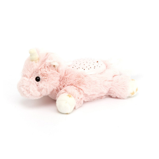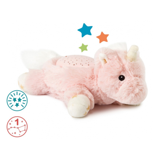 Noční světlo v podobě něžného plyšového jednorožce s projekcí hvězdné oblohy pomůže vašemu dítěti uklidnit se a snáze usnout. Promění pokoj vašeho dítěte v klidnou oázu pod noční oblohou. Světelný projektor promítá na stěnu či strop hvězdnou oblohu s měsícem a souhvězdím velkého vozu ve třech barvách světla. Světelná projekce se automaticky vypne po 45 minutách. Díky své kompaktní velikosti je jednorožec vhodný i na cesty, na dovolené či víkend u prarodičů. Baterie 2xAAA jsou součástí balení. Rozměry: 19 x 9 x 10 cm Vhodné pro děti od narození.
