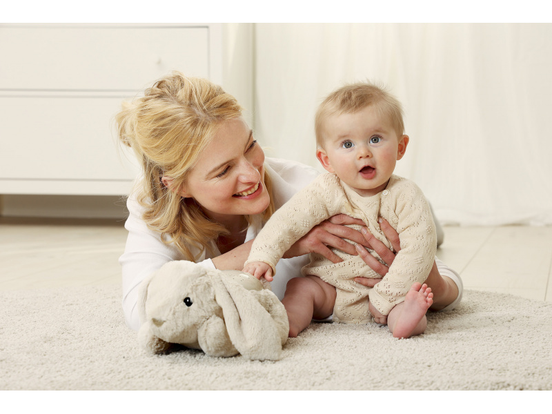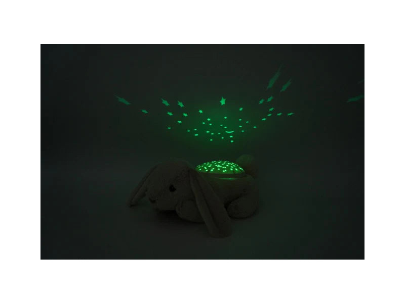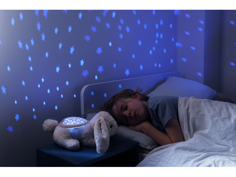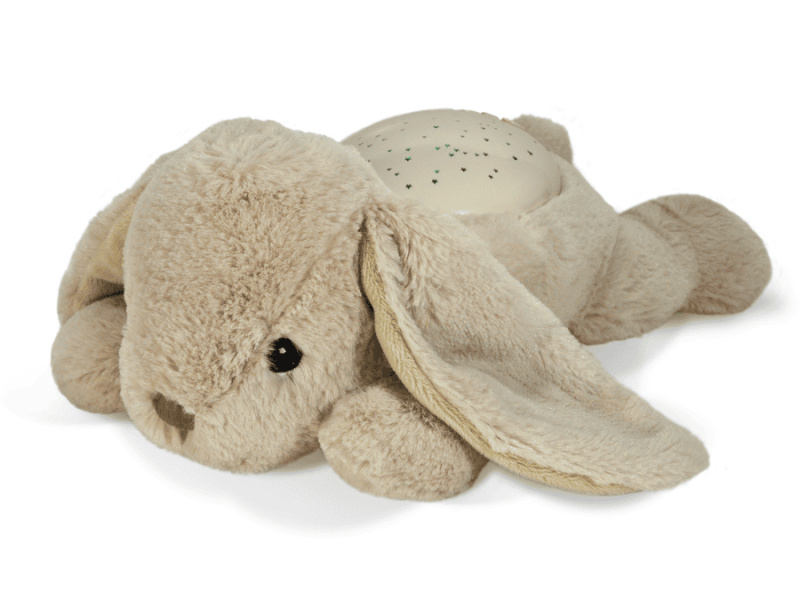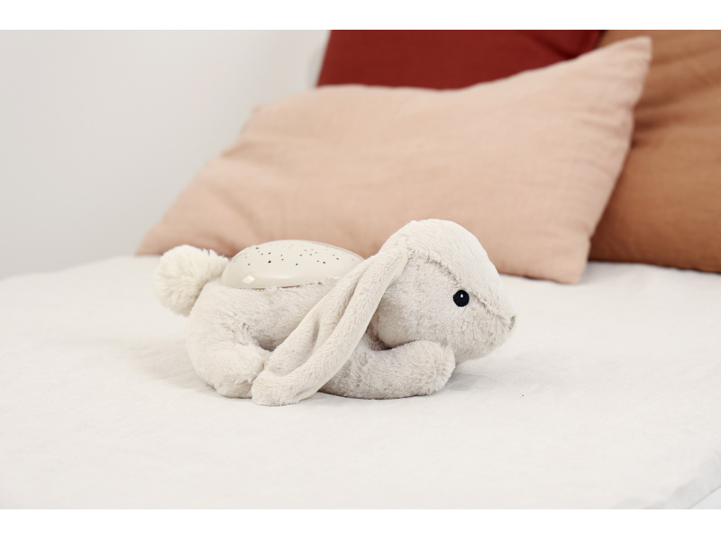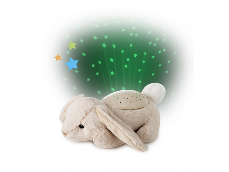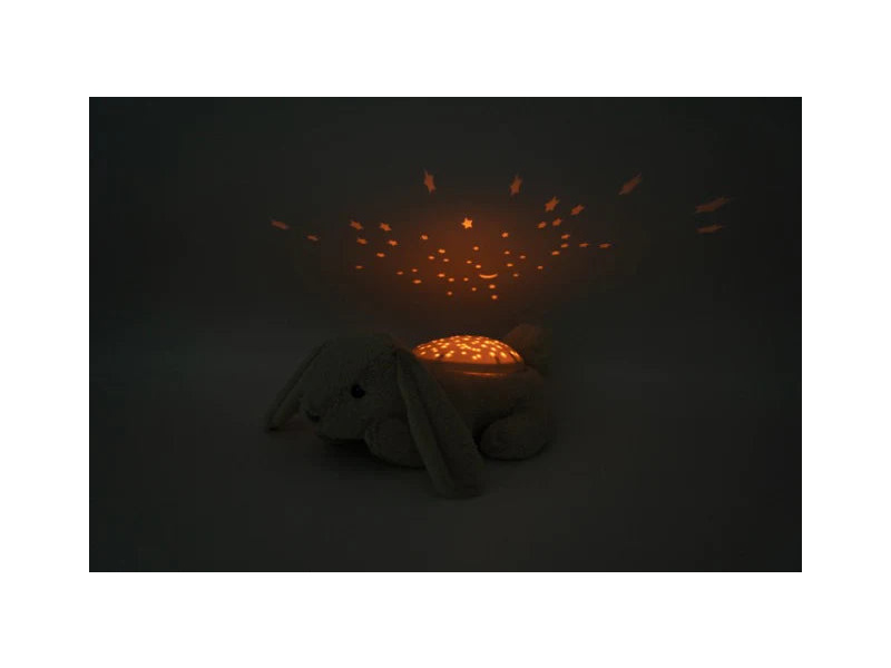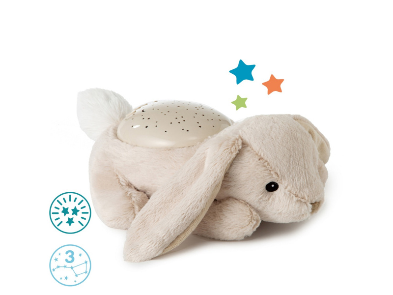 Noční světlo v podobě něžného plyšového králíčka s projekcí hvězdné oblohy pomůže vašemu dítěti uklidnit se a snáze usnout. Promění pokoj vašeho dítěte v klidnou oázu pod noční oblohou. Světelný projektor promítá na stěnu či strop hvězdnou oblohu s měsícem a třemi souhvězdími ve třech barvách světla. Světelná projekce se automaticky vypne po 45 minutách. Baterie 3xAA nejsou součástí balení. Rozměry: 30 x 22 x 11 cm Vhodné pro děti od narození.