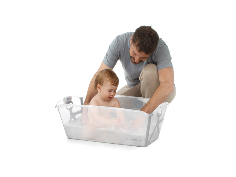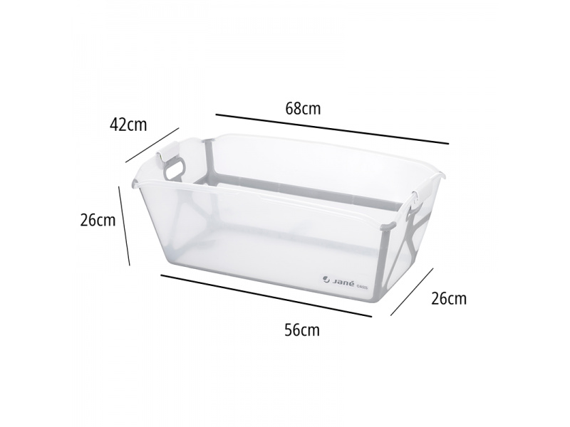 Skládací dětská vanička Jané Oasis je praktické řešení pro koupání dítěte od narození až do 4 let. Kombinuje maximální skladnost a nadstandardní stabilitu. Díky ultra-kompaktnímu systému skládání ji snadno uložíte do malého prostoru nebo vezmete na cesty. Vanička má pevnou jednolitou plochou základnu, která je stabilní a miminku poskytuje pohodlnou a bezpečnou oporu. Promyšlené prvky bezpečnosti (protiskluzová základna, pojistky proti samovolnému složení) zajišťují, že je vanička při koupání bezpečná a spolehlivá. Vodu snadno vypustíte přes měkkou zátku, která je umístěná tak, aby nebyla v kontaktu s dítětem. Díky dvěma madlům vaničku snadno přenesete. použití od narození do 4 let ultrakompaktní skládání – ideální na skladování i cestování pevné ploché dno pro vyšší stabilitu, komfort a bezpečí vypouštěcí zátka ze silikonu na dně, umístěná mimo kontakt s dítětem protiskluzová základna pojistka proti samovolnému složení 2 madla pro snadné přenášení možnost umístění na Jané stojan (stojan není součástí) pro koupání ve vyšší a pohodlnější výšce kompatibilní s koupacím lehátkem Jané Nemo (lehátko není součástí) Rozměry: Rozměry rozložené: 68 × 42 × 26 cm Rozměry složené: 68 × 28 × 9 cm Hmotnost: 1,5 kg K vaničce je možné dokoupit samostatně prodávaný Jané stojan a lehátko Jané Nemo. Údržba: po použití vypustit vodu, opláchnout a otřít; nechat volně uschnout. Protiskluzové části udržovat čisté pro maximální přilnavost.