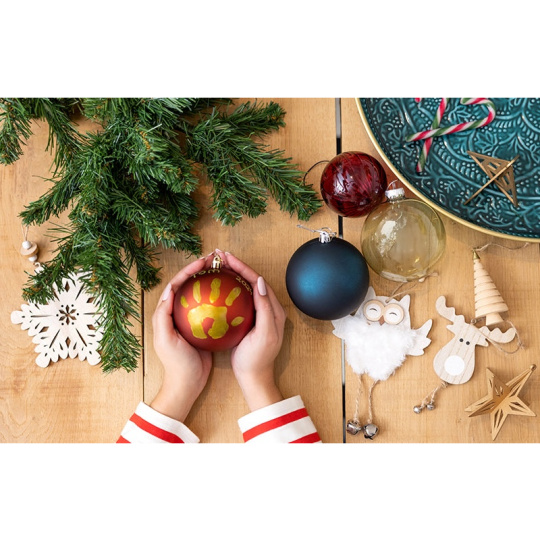 Zachyťte kouzlo prvních společných Vánoc s miminkem pomocí originální ozdoby, kterou si sami vytvoříte. Tato sada umožňuje otisknout dětskou ručičku na vánoční kouli a vytvořit tak jedinečnou památku na první sváteční chvíle. Jednoduchý způsob, jak vytvořit osobní vánoční ozdobu s otiskem dítěte Ideální dárek pro novopečené rodiče nebo krásná aktivita pro rodiny s malým dítětem Dermatologicky testované materiály jsou šetrné k dětské pokožce Obsah balení: vánoční koule z vysoce kvalitního plastu, zlatá barva v tubě (dermatologicky testovaná), zlatý fix, návod krok za krokem