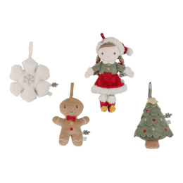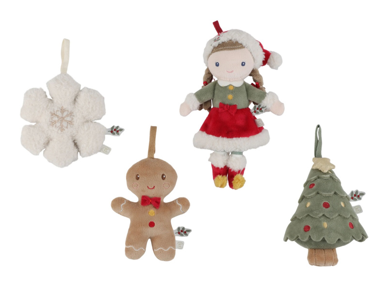 Roztomilá sada čtyř plyšových ozdob Little Dutch vnese do vašeho domova hřejivou atmosféru Vánoc. V dárkovém balení najdete panenku Rosu ve vánočním oblečení, usměvavého perníčka, vánoční stromeček a sněhovou vločku. Díky měkkému a lehkému materiálu jsou ozdoby bezpečné pro malé děti a snadno se věší na vánoční stromek, větvičku nebo girlandu. Společné zdobení stromku se tak stane kouzelným rodinným okamžikem, který si budete užívat rok co rok. Ozdoby jsou opakovaně použitelné, vhodné pro každoroční vánoční výzdobu. Jsou součástí speciální vánoční kolekce doplňků a hraček Little Dutch. Dodáváno v dekorativní dárkové krabičce. Složení: 100% polyester