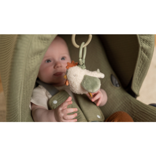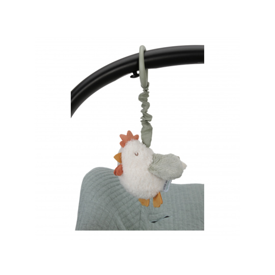 Plyšová slepička po zatažení za šňůrku vibruje a legračně poskakuje. Hračku je možné snadno zavěsit na autosedačku, kočárek či hrazdu na hrací dece. Hračka je součástí designové kolekce hraček Little Dutch Farma. Rozměry: 28 x 12 x 7 cm Vhodné pro děti od narození.