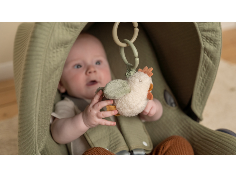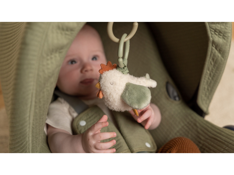 Plyšová slepička po zatažení za šňůrku vibruje a legračně poskakuje. Hračku je možné snadno zavěsit na autosedačku, kočárek či hrazdu na hrací dece. Hračka je součástí designové kolekce hraček Little Dutch Farma. Rozměry: 28 x 12 x 7 cm Vhodné pro děti od narození.