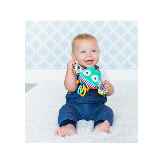 Originální hračka, která zabaví děti i jejich rodiče. Zatáhněte za kroužek a sledujte spolu s dítětem, jak sova vibruje a mává křídly! Pozornost dítěte upoutají i výrazné barvy a různorodé textury ke zkoumání včetně bezpečného zrcátka. Vhodné pro děti od narození.