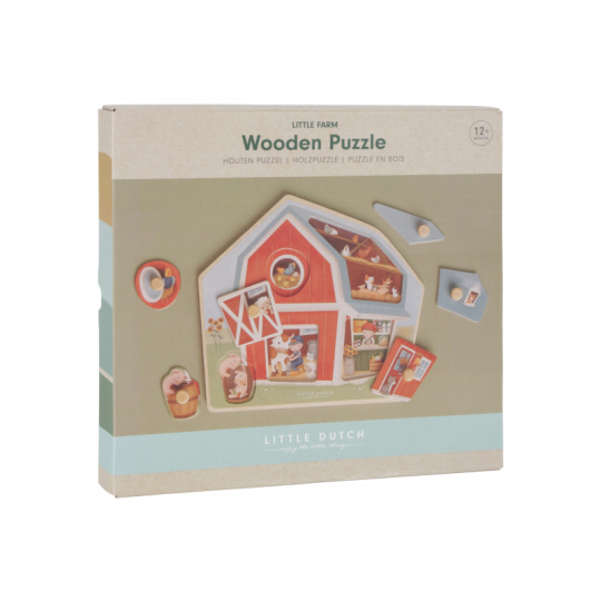 Puzzle hra v dřevěném provedení s krásnými obrázky nabízí 6 různých vkládacích dílků s tématem života na farmě. Hračka rozvíjí zrak, jemnou motoriku i hmat dítěte. Jednotlivé dílky jsou navrženy tak, aby byly lehce uchopitelné malými dětskými ručičkami. Hračka je součástí designové kolekce hraček a doplňků Little Dutch Farma. Vyrobeno z dřeva certifikovaného FSC. Rozměry: 26 x 23,8 x 1 cm Vhodné pro děti od 12 měsíců.