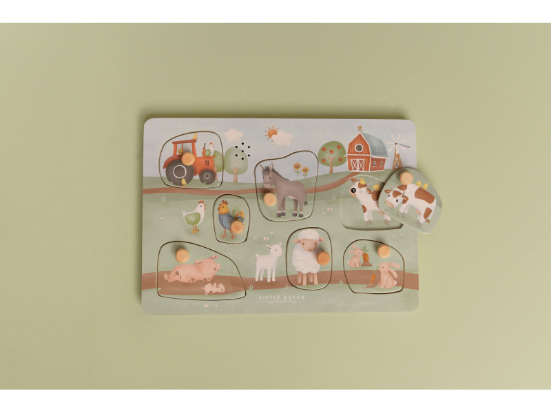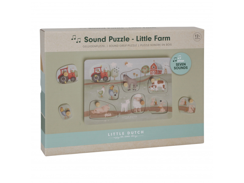 Seznamte vaše dítě se zvířátky z farmy a poznávejte společně, jakými zvuky se dorozumívají. Když dítě vloží správný tvar do otvoru na herní desce, ozve se hlas zvířátka, které je na vkládacím dílu namalované. Puzzle hra v dřevěném provedení s krásnými obrázky nabízí 7 různých vkládacích dílů ve tvaru traktoru a zvířátek s jejich hlasy. Hračka je součástí designové kolekce hraček a doplňků Little Dutch Farma. Vyrobeno z dřeva certifikovaného FSC. Baterie 2xAAA nejsou součástí balení. Rozměry: 21 x 30 x 2,4 cm Vhodné pro děti od 12 měsíců.