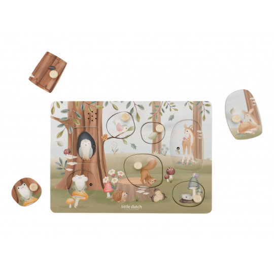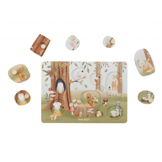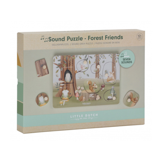 Poznávejte spolu s vaším dítětem, jaká zvířata žijí v lese a jaké zvuky vydávají. Když dítě vloží správný tvar do otvoru na herní desce, ozve se např. hlas ptáčka či žáby. Puzzle hra v dřevěném provedení s krásnými obrázky nabízí 7 různých vkládacích dílů. Hračka je součástí designové kolekce hraček a doplňků Little Dutch Forest Friends inspirované životem v lese. Rozměry: 21 x 30 x 2,4 cm Baterie 2xAAA nejsou součástí balení. Vhodné pro děti od 12 měsíců.