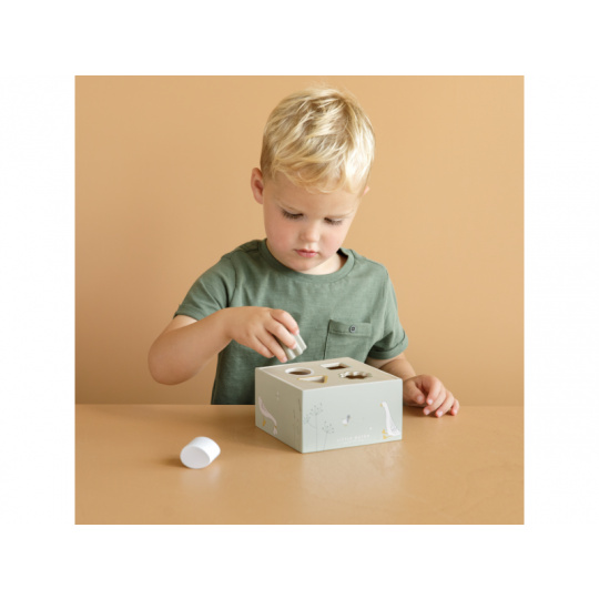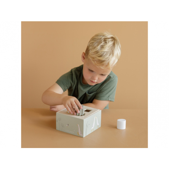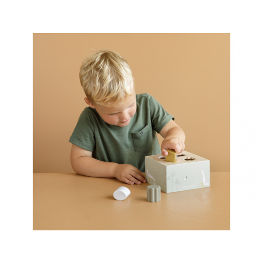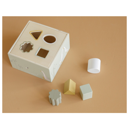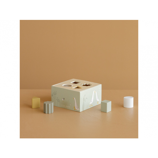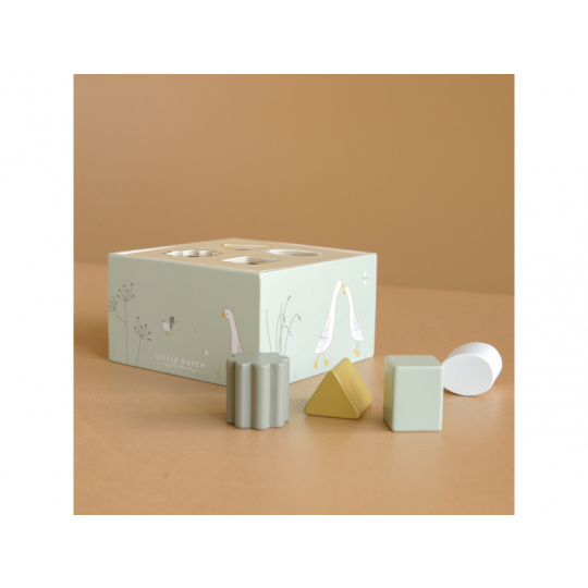 Vkládačka dřevěných tvarů učí děti kreativním zpsůobem rozpoznávat tvary a barvy a zdokonalit svou koordinaci rukou a očí. Malé ručičky snadno uchopí kostky různých tvarů a pak je zatlačí do správného otvoru. Krabička s krásnými ilustracemi ze života husičky je vyrobena z pevného dřeva. Klasická vzdělávací a zároveň zábavná hračka. Rozměry: 12,8 x 12,8 x 12,8 cm Vhodné pro děti od 18 měsíců.