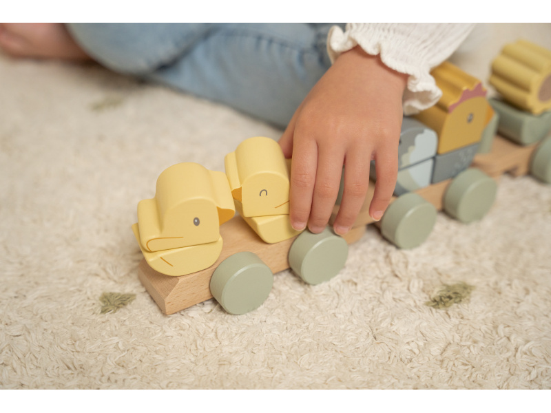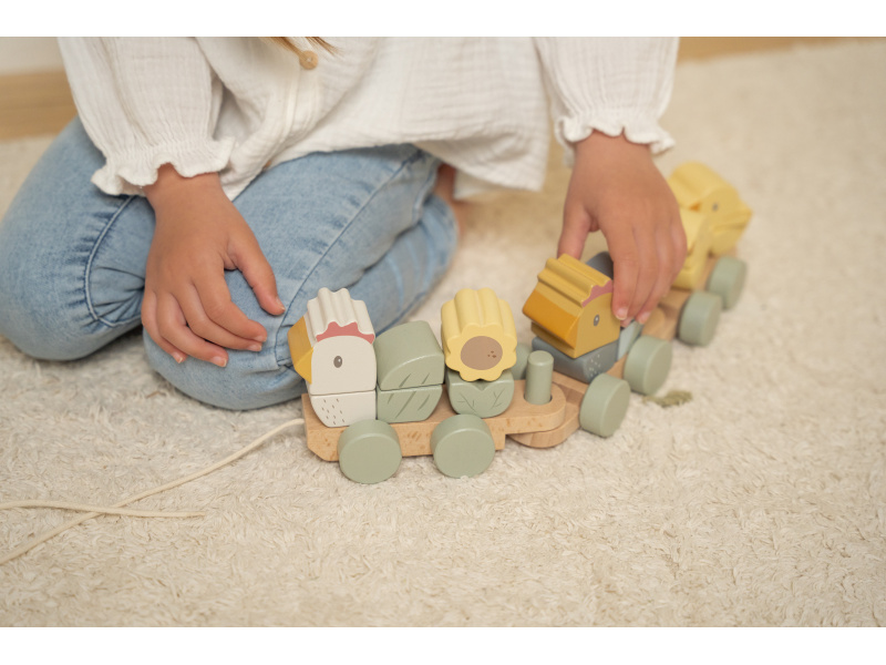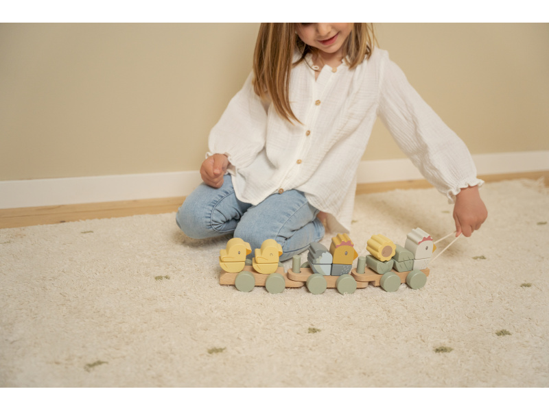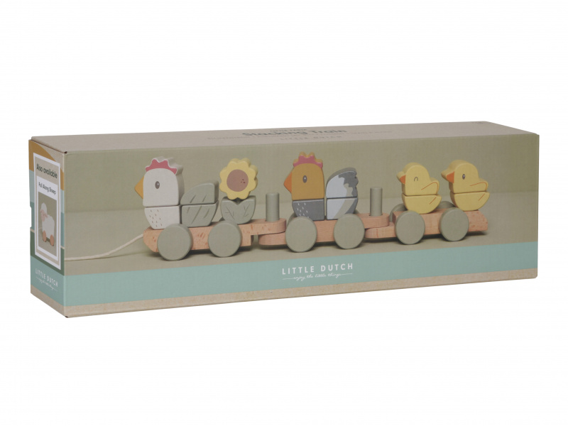Originální dřevěný vláček z dílny Little Dutch je tvořen kostkami různých barev ve tvaru slepičky a kuřátek. Kombinováním kostek si vaše dítě může sestavovat různé varianty vagónů dle své fantazie. Vláček zajistí vašemu dítěti spoustu zábavy a může sloužit i jako krásná dekorace v dětském pokoji. Hračka je součástí designové kolekce hraček a doplňků Little Dutch Farma. Vyrobeno z dřeva certifikovaného FSC. Rozměry: 38,2 x 7 x 10,6 cm Vhodné pro děti od 18 měsíců.