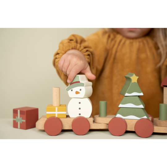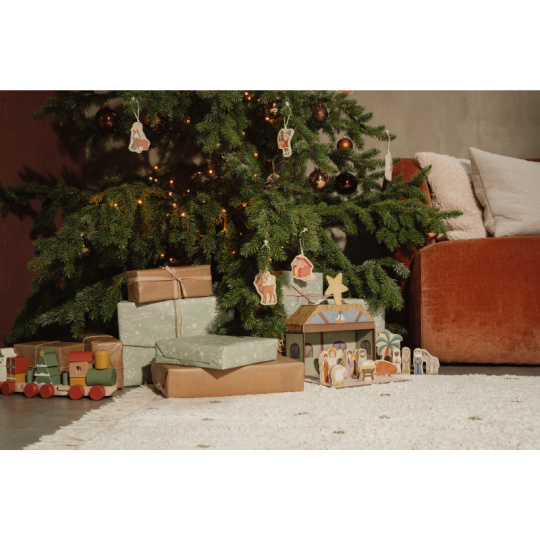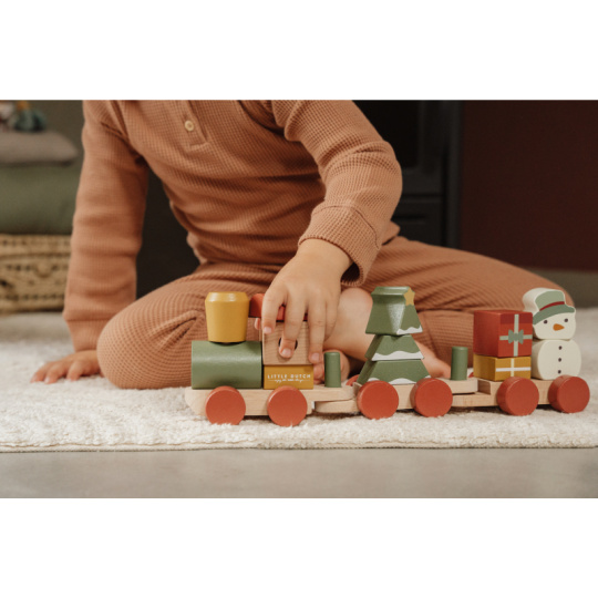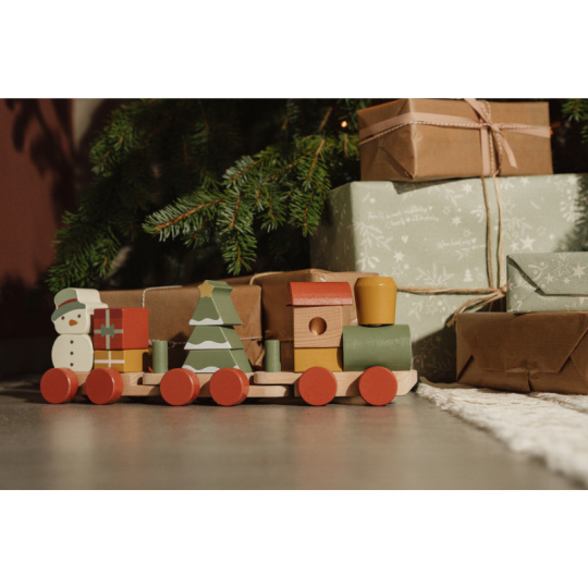 Speciální vánoční edice dřevěného vláčku z dílny Little Dutch. Vláček se skládá z kostek různých tvarů a barev s vánočními motivy, s jejichž pomocí může vaše dítě sestavovat různé varianty vagónů. Vláček bude krásným vánočním dárkem, zajistí vašemu dítěti spoustu zábavy a může sloužit i jako originální dekorace v dětském pokoji. Rozměry: 38,5 x 11 x 6,8 cm Vhodné pro děti od 12 měsíců.