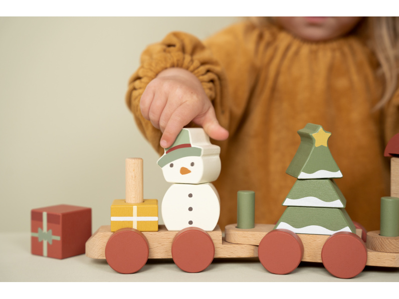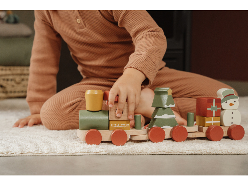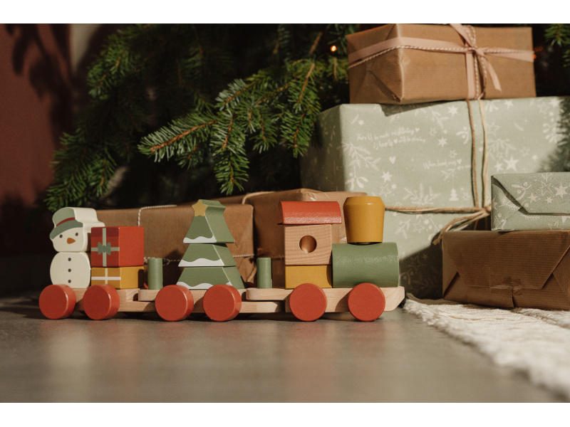 Speciální vánoční edice dřevěného vláčku z dílny Little Dutch. Vláček se skládá z kostek různých tvarů a barev s vánočními motivy, s jejichž pomocí může vaše dítě sestavovat různé varianty vagónů. Vláček bude krásným vánočním dárkem, zajistí vašemu dítěti spoustu zábavy a může sloužit i jako originální dekorace v dětském pokoji. Rozměry: 38,5 x 11 x 6,8 cm Vhodné pro děti od 12 měsíců.
