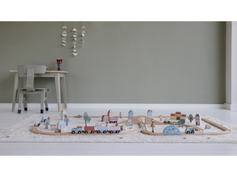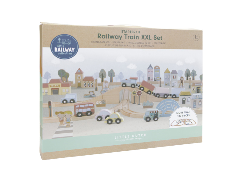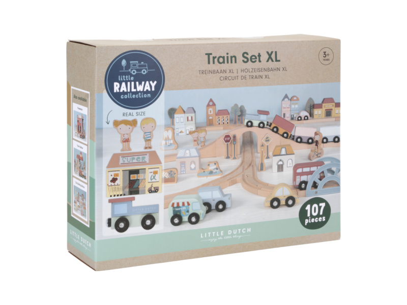 Vydejte se s vaším dítětem na nekonečné dobrodružství s dřevěnou vláčkodráhou XL od Little Dutch. Naskočte na vlak, autobus nebo do auta a prozkoumejte město. Tato sada s více než 100 díly nabízí obrovskou variabilitu a můžete tak s vaším dítětem vymýšlet nové a nové kombinace. Každá dřevěná figurka má na obou stranách krásné ilustrace. Pro ještě větší variabilitu je možné k základní XL dráze dokoupit další samostatně prodávané sady s tématikou ZOO, město, hasičské stanice, vlakové stanice apod. Rozměry: 145 x 85 cm Vyrobeno z udržitelného dřeva certifikovaného FSC. Vhodné pro děti od 3 let.