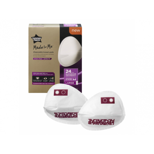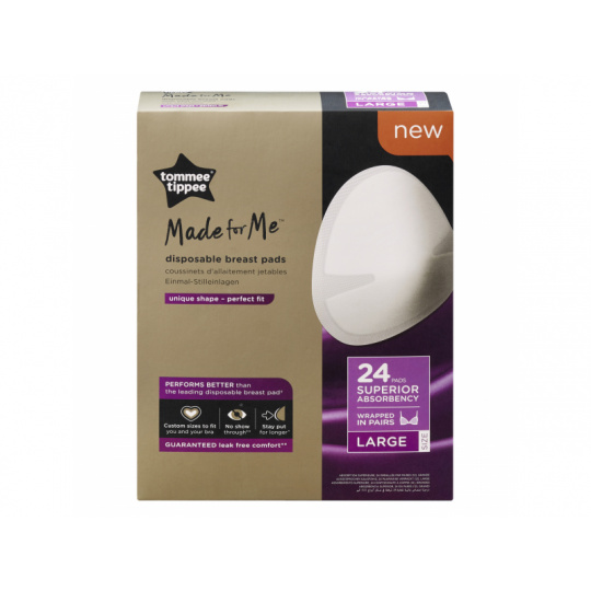 Ultra absorpční vložky do podprsenky pro kojící maminky jsou tenké, pohodlné a přitom díky pěti vrstvám dostatečně bezpečné. Samolepicí proužek je zárukou, že budou držet na místě a neklouzat po těle. Zaoblený tvar vložky přispívá k diskrétnímu nošení bez viditelných kontur vložky pod podprsenkou. Vložky jsou hygienicky baleny po 2 kusech tak, aby mohly být vždy po ruce v kabelce či přebalovací tašce. Tři dostupné velikosti (S, M a L) umožňují maximální přizpůsobení velikosti a tvaru prsou. Balení obsahuje 24 ks vložek velikosti L.
