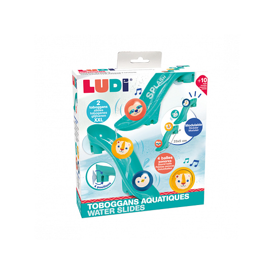 Tobogány s míčky do vany promění každé koupání v zábavnou vodní dráhu, kterou si dítě může samo sestavit a měnit. Díky silným přísavkám se jednotlivé díly snadno upevní na hladké povrchy (obklady, vanu) a drží stabilně i během hry. Dítě pozoruje, jak se míčky pohybují po dráze, zkouší různé varianty a postupně chápe princip příčina–následek. Čtyři plovoucí míčky s rolničkou při jízdě po skluzavce jemně cinkají a podněcují další objevování. 2 skluzavky s možností umístění ve 4 různých variantách silné přísavky pro stabilní uchycení na hladké povrchy 4 plovoucí míčky s rolničkou cinkající při pohybu podporuje jemnou motoriku, koordinaci i smyslové vnímání Rozměry: skluzavky 25 x 5 cm, míčky průměr 4,5 cm Složení: skluzavky PVC, míčky ABS Vhodné pro děti od 10 měsíců.