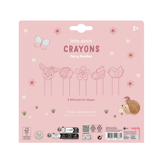 Kvalitní voskovky v 5 barvách přinesou vašim dětem hodiny kreativní zábavy. Každá voskovka je zakončena roztomilou postavičkou, která láká ke hře a dělá z kreslení ještě větší zábavu. Ideální pro první výtvarné pokusy: Snadno uchopitelné i pro malé děti – perfektní pro první čárky, tvary i obrázky Voskovky jsou měkké, hladce kloužou po papíře Postavičky podporují rozpoznávání tvarů a barev Vyrobeno z netoxických materiálů, bezpečné pro děti Vhodné pro každodenní tvoření doma, ve školce nebo na cestách Podporují rozvoj dovedností: Zlepšují úchop a koordinaci oka a ruky Pomáhají rozvíjet jemnou motoriku Umožňují dětem vyjadřovat se kreativně a učí je pracovat s barvami Rozvíjejí fantazii a trpělivost prostřednictvím hry Voskovky jsou součástí designové kolekce hraček a doplňků Little Dutch Fairy Garden inspirované životem na zahradě. Vhodné pro děti od 2 let.