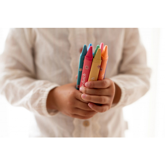 Nechte své dítě objevovat svět barev s touto Little Dutch sadou 8 veselých voskovek v jemných odstínech. Trojúhelníkový tvar skvěle padne do malých dětských rukou, podporuje správný úchop a rozvíjí jemnou motoriku. Ideální pro první kreslení, malování i společné tvoření s rodiči. Voskovky jsou odolné, snadno se drží a díky svým měkkým barvám vytvářejí krásné, syté tahy. Perfektní volba pro malé umělce, kteří právě začínají objevovat radost z tvoření. Skvěle ladí s ostatními výtvarnými doplňky Little Dutch. Vhodné pro děti od 2 let.