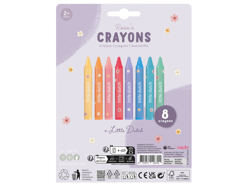 Nechte své dítě objevovat svět barev s touto Little Dutch sadou 8 veselých voskovek v jemných odstínech. Trojúhelníkový tvar skvěle padne do malých dětských rukou, podporuje správný úchop a rozvíjí jemnou motoriku. Ideální pro první kreslení, malování i společné tvoření s rodiči. Voskovky jsou odolné, snadno se drží a díky svým měkkým barvám vytvářejí krásné, syté tahy. Perfektní volba pro malé umělce, kteří právě začínají objevovat radost z tvoření. Skvěle ladí s ostatními výtvarnými doplňky Little Dutch. Vhodné pro děti od 2 let.
