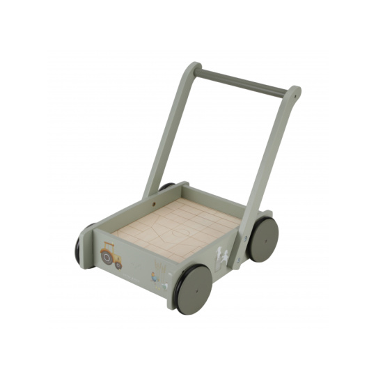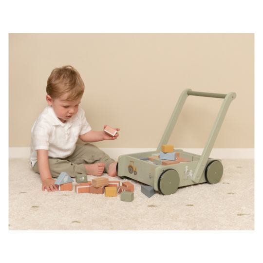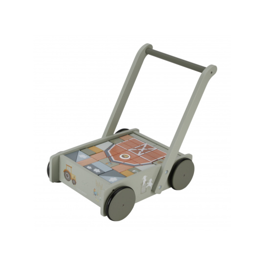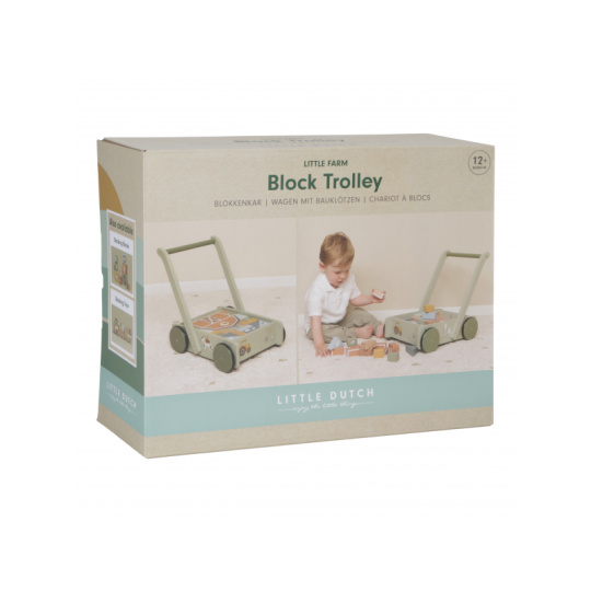 Dřevěný vozíček je vybaven koly s gumovým pruhem a je naplněn barevnými dřevěnými kostkami různých tvarů. Rukojeť je v ideální výšce pro batolata, aby mohly vozíček pěkně tlačit před sebou. Hraní s kostkami poskytne dětem spoustu zábavy a vám pomůže učit vaše dítě zábavnou formou rozpoznávat barvy a tvary. Hračka je součástí designové kolekce hraček Little Dutch Farma. Rozměry: 40,5 x 30 x 39 cm Vhodné pro děti od 12 měsíců.