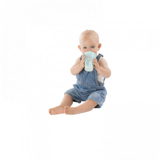 Ergonomické pítko je ideální při přechodu z lahve na hrneček. Netekoucí ventil zaručuje perfektní voděodolnost v jakékoliv pozici. Hrneček má protiskluzové dno a závit na víčku.