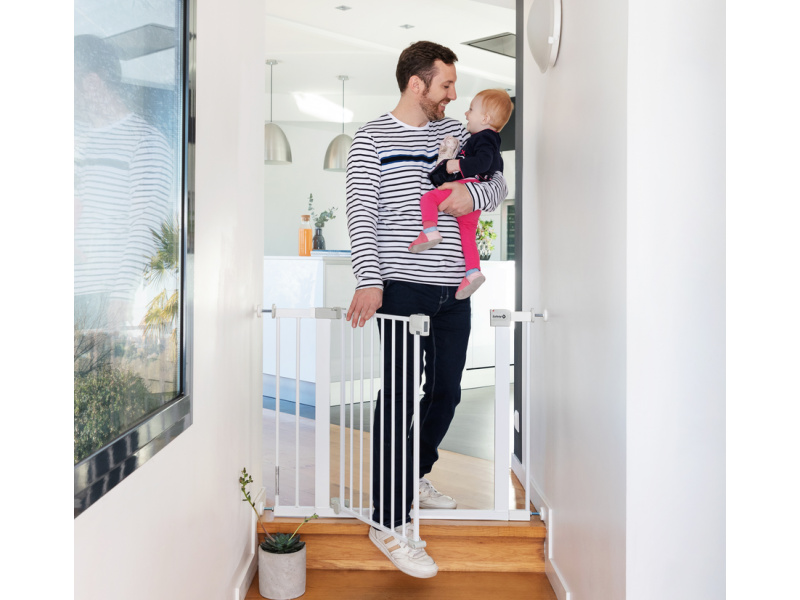 Safety 1st Auto Close je kovová zábrana s automatickým zavíráním, kterou je možné otevírat oběma směry. Dvojitý zajišťovací mechanismus zvyšuje bezpečnost. Díky vizuálnímu indikátoru Secure Tech® budete mít jistotu, že je zábrana správně zavřena. Jednoduchá instalace bez vrtání. Zábrana je vhodná do dveří či prostoru mezi stěnami o rozměrech 73 cm až 80 cm a lze ji rozšířit pomocí samostatně dostupných prodloužení až na 136 cm. Rám ve tvaru U zajišťuje pevné ukotvení Jednoduchá instalace bez vrtání Instalaci umožňují 4 tlakové šrouby Pohodlné otvírání jednou rukou Automatické zavírání Mimořádně široký průchod Indikátor Secure Tech® ukazuje, zda je zábrana bezpečně zajištěna Možnost nastavení otvírání jedním nebo oběma směry Dvojitý zajišťovací mechanismus zavírání zvyšuje bezpečnost Materiál: kov Pro otvory 73 – 80 cm Výška zábrany 73 cm Možnost dokoupení rozšíření zábrany o 7 cm, 14 cm, 28 cm Se samostatně prodávaným prodloužením je možné zábranu používat do otvorů šíře až 136 cm